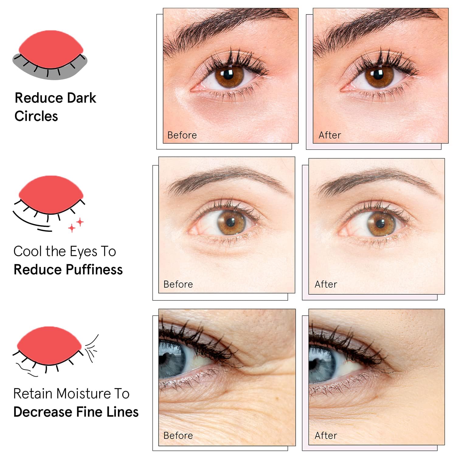 - 【Reduces eye puffiness】: Eye masks for puffy eyes and dark circles are infused with a variety of powerful ingredients such as caffeine, hyaluronic acid, and niacinamide, making these moisturizing eye masks both hydrating and firming. They eliminate puffiness, reduce fine lines and bags, and give your eyes a more youthful look.
