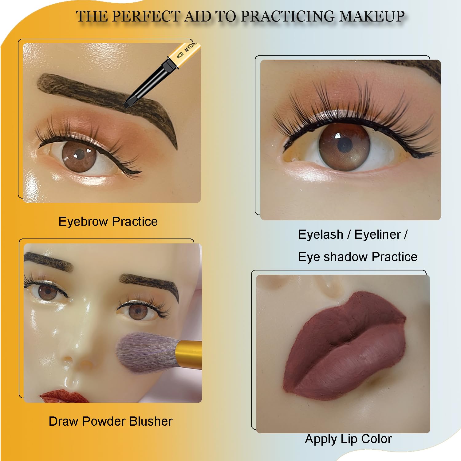 - The Perfect Aid to Practicing Makeup: Are you still struggle with makeup? Do you want to achieve make up perfection? If yes, our full face makeup practice face is your best choice. Makeup Mannequin Head is mainly used for eye makeup, eyelash extensions, eyebrow tattoo and other face makeup. It is very suitable for makeup artists and people who want to learn makeup. Practice makes perfect and without any harming your skin
