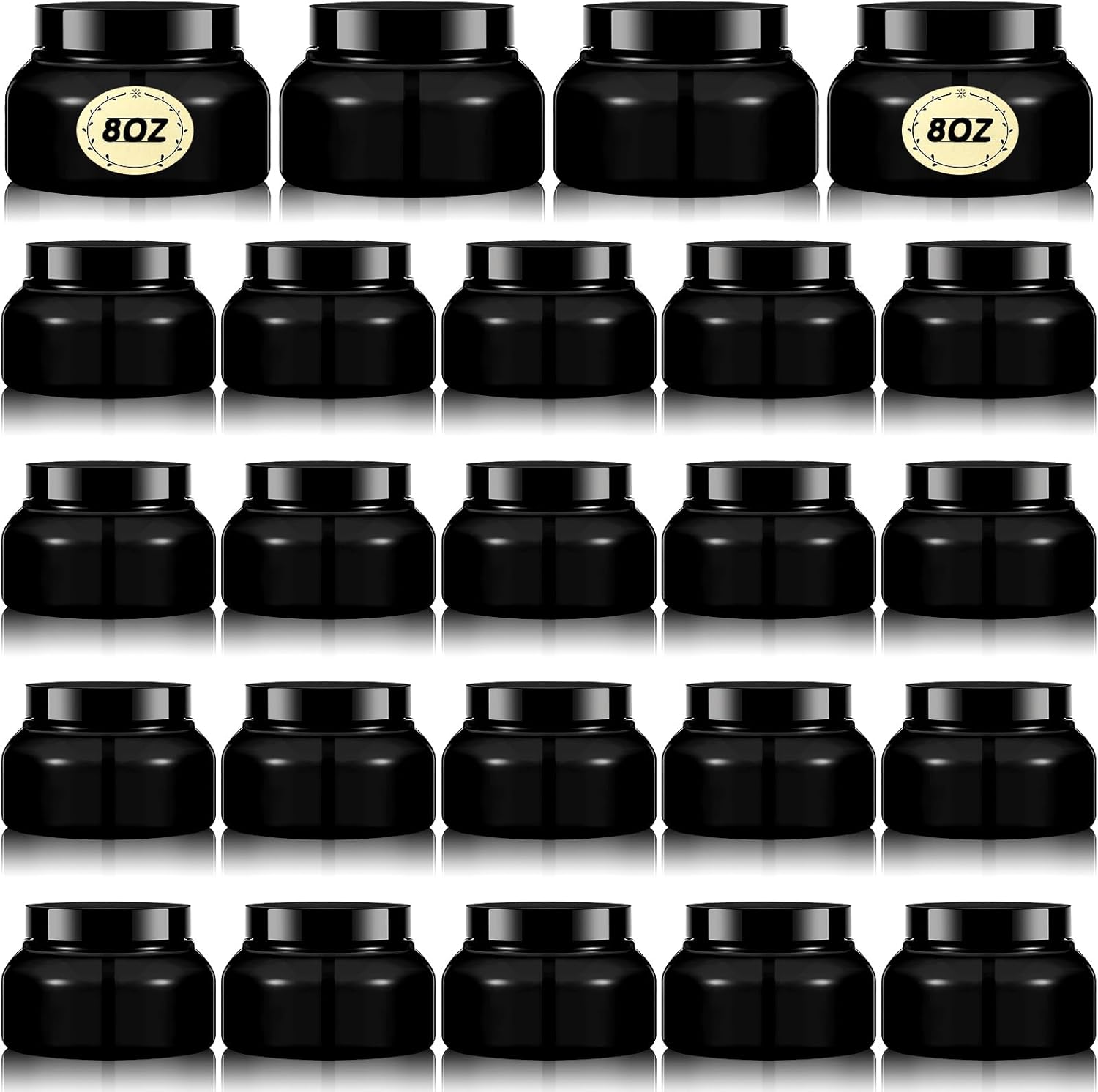 Tessco 24 Pack Plastic Jars with Lids Labels Empty Clear Plastic Jars Round Refillable Cosmetic Containers Body Butter Containers Bulk Sugar Scrub Bottle for Make Up(8 oz,Black)