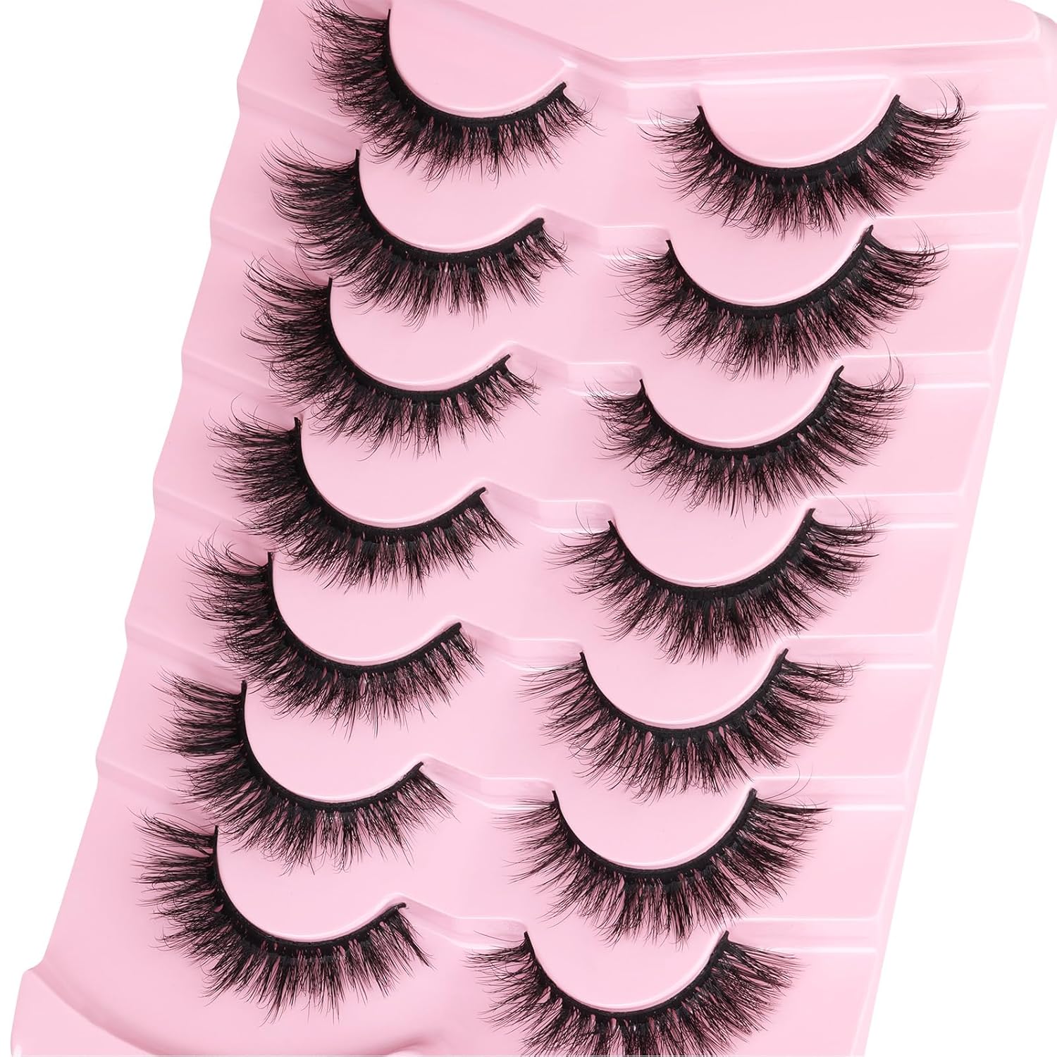 Kiromiro Lashes False Eyelashes Cat Eye Faux Mink Lashes Wispy Strip Lash 6D Volume Fake Lash Natural Look Eyelashes Pack 7 Pairs
