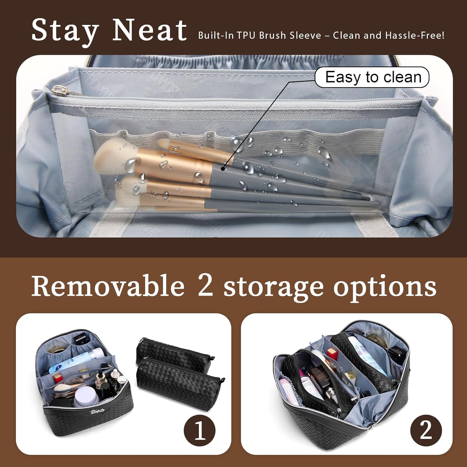 - Multifunctional Makeup Bag with Compartments: Designed to be dirt-resistant and waterproof, this makeup travel organizer bag is suitable for various settings, whether it's on your dresser, in the bathroom, outdoors, in the car,in the train or packed in your luggage. Keep it by your side to meet your makeup needs anytime, anywhere.