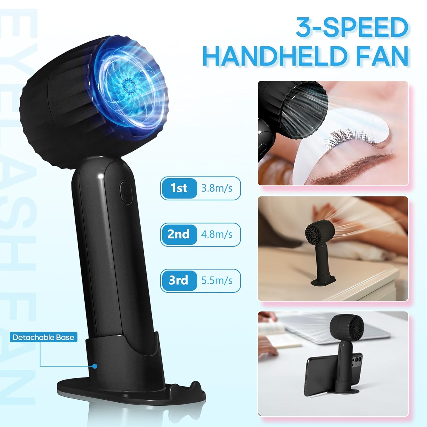 - 【HANDHELD LASH FAN】The eyelash fan included in this lash cleaning kit can be used to dry eyelashes.The eyelash fan has three wind speeds and can be adjusted at will.The base allows the fan to stand and acts as a phone stand.And lash fan is USB rechargeable and easy to carry,matching lash shampoo brush can bring a convenient eyelash wash experience.