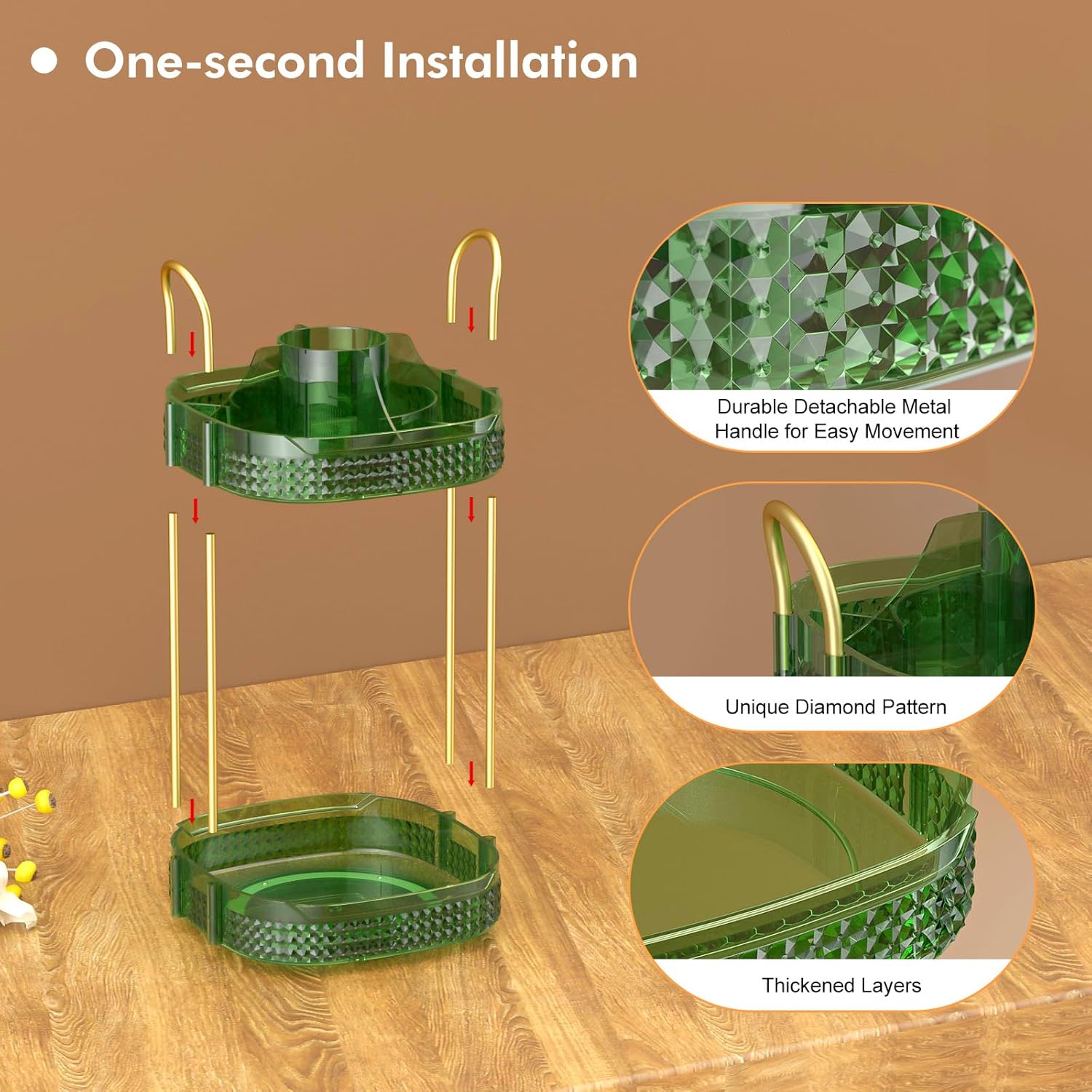 - 360 Degree Rotation& Easy to Install:➤Reinforced steady base rotates smoothly and silently, the rotating makeup organizer is easy access to all of your make-up in seconds.Less installation step are required other than inserting metal rack and handle,do not worry about repeated disassembly to shorten the lifetime of the makeup organizer.