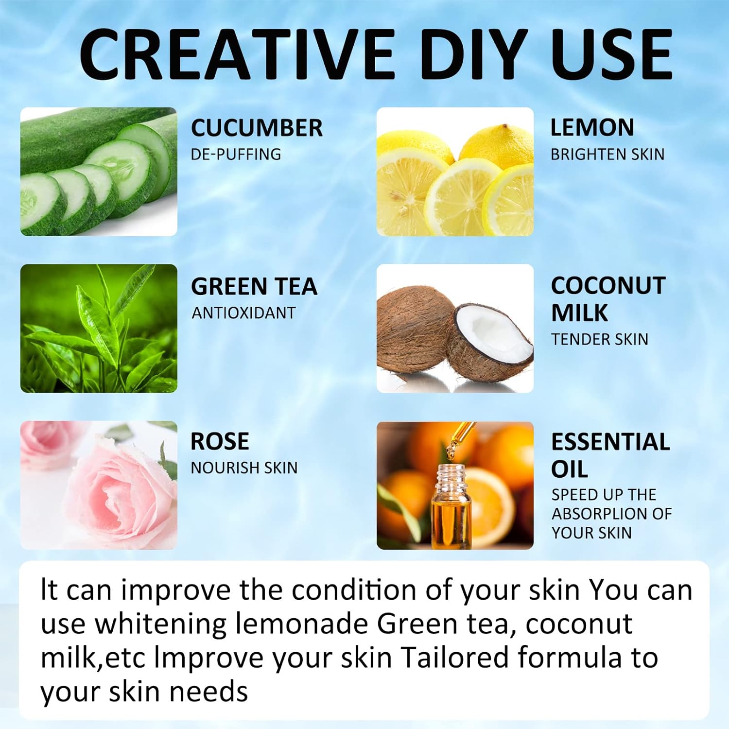 - 【SAVE MONEY & VERSATILE】 --Refillable for a fresh and clean cube with every use. You can add different formulas based on your skin condition to help your skin rejuvenate better, such as 1. Lemon to brighten, 2. Rose to calm, 3. Aloe Vera For Acne Prone Skin, 4. Chamomile and green tea for inflammation, 5. Coconut milk for lubricating, 6.cucumber for reducing swelling, 7.mint leaves for refreshing.