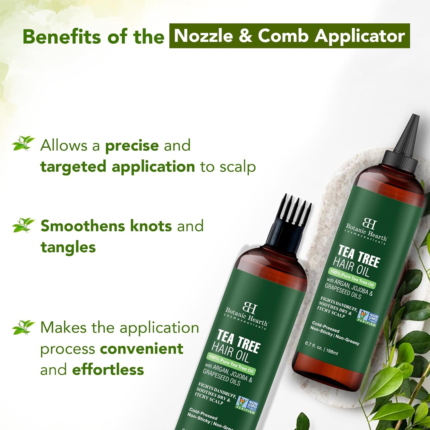 - Soothes Itchy & Dry Scalp: The Botanic Hearth Tea Tree hair oil contains natural tea tree oil that provides a calming effect on the scalp, relieves dryness & itchiness while leaving the hair feeling clean & refreshed