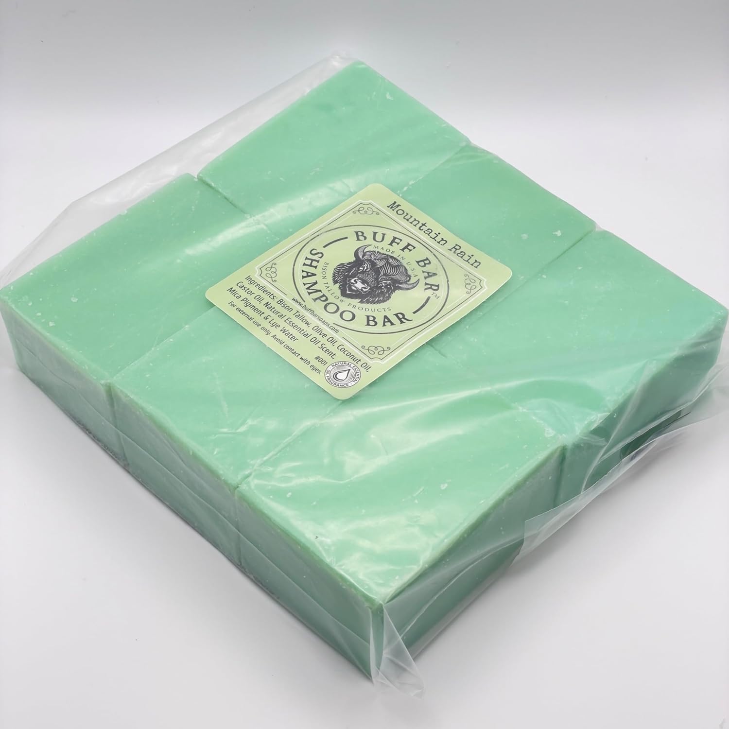 Pure Bison Tallow Buff Shampoo Bar, Mountain Rain, (6 pack) - Scents of Sea Salt, Moss, & Freesia - Cleans, Moisturizes, Naturally Derived, No Dyes, No Chemicals, No Preservatives
