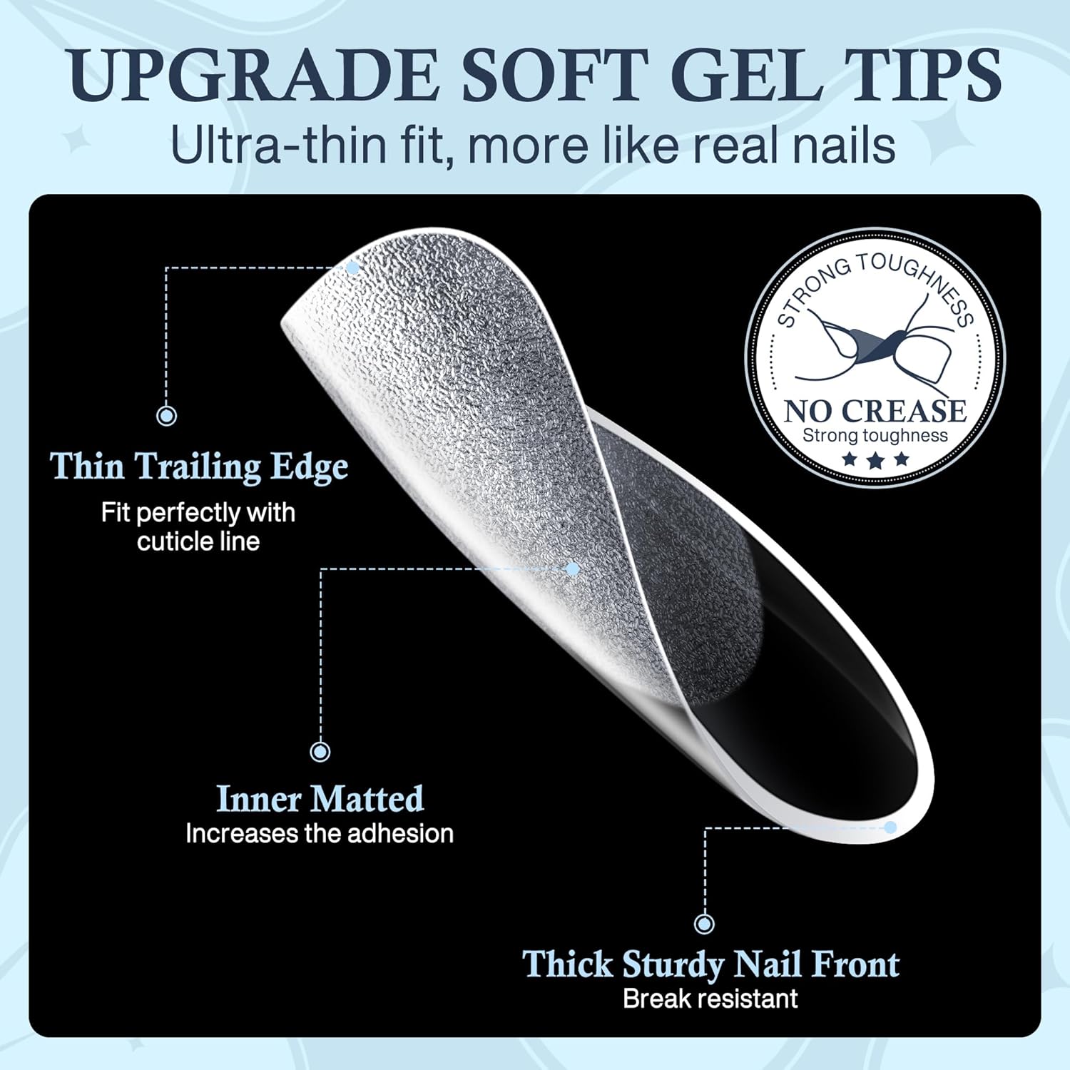 - ❤️ Foldable Soft Gel Tips: Crafted from gelly soft gel material, these fake nails leave no trace even when bent. Their bright clarity allows for easy pressing, trimming, and painting, helping you create your ideal nail shape effortlessly. Perfect for a true DIY manicure.