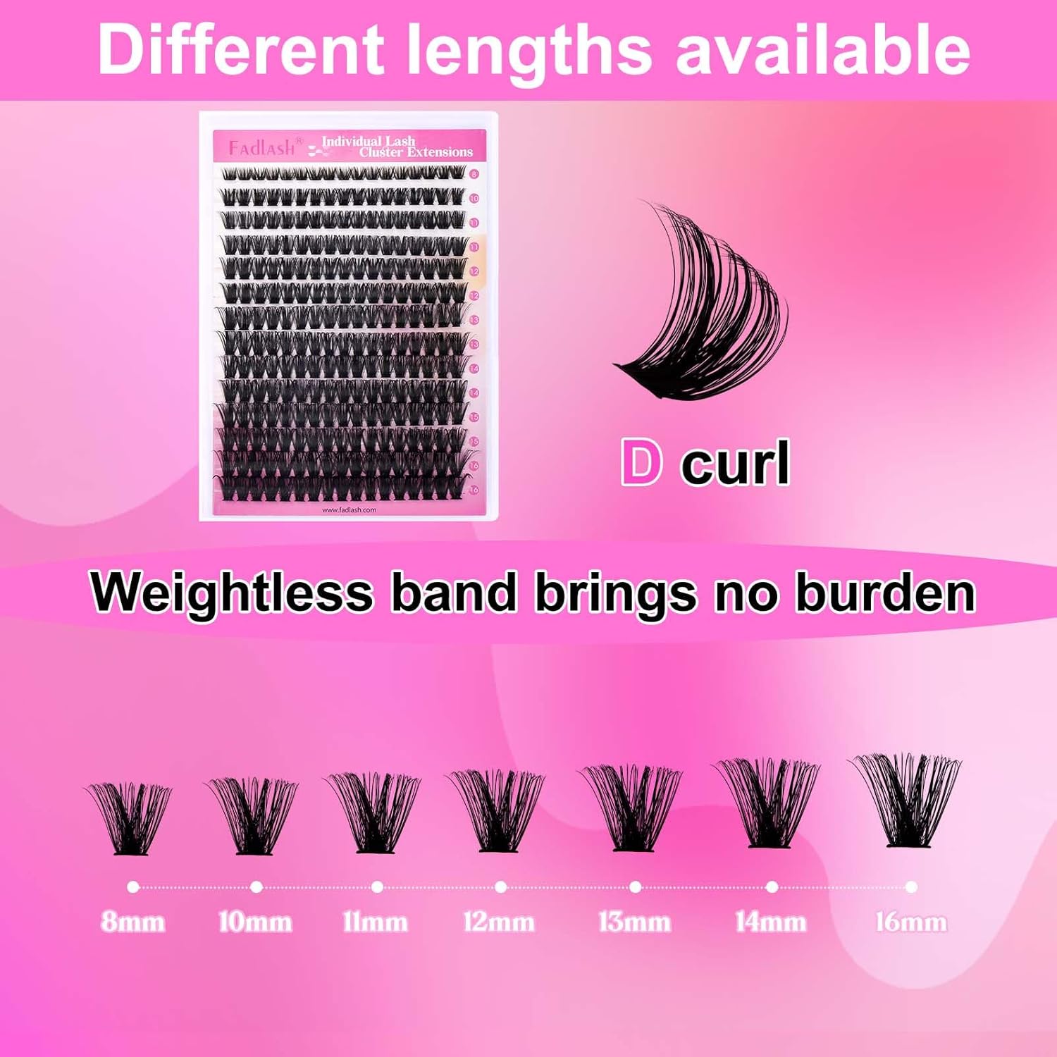 - Natural Lash Clusters: These soft cluster lashes with mixed length in one tray are convenient for you to use. Different lash styles can be created by yourself with our lash extensions clusters!