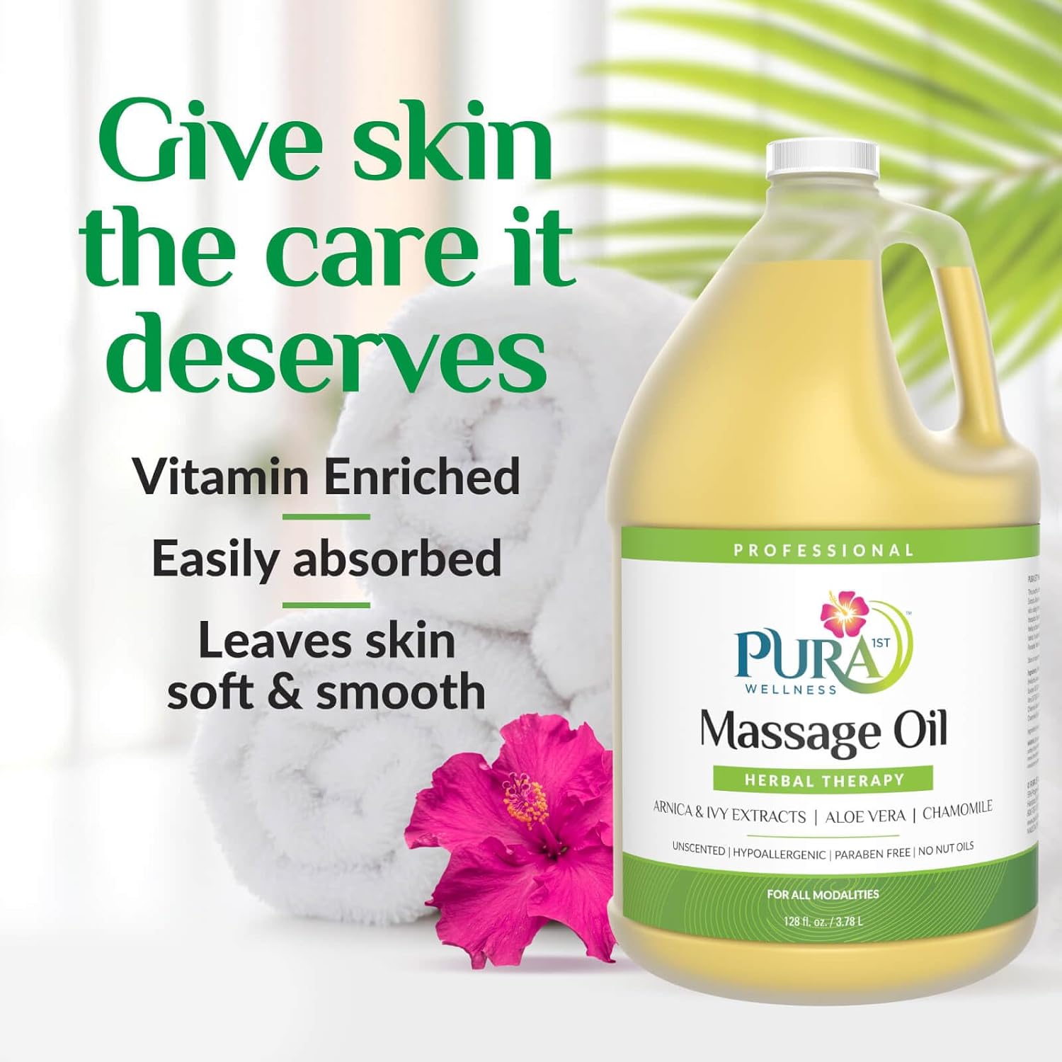 Wellness Professional Herbal Massage Oil, 128oz, Hypoallergenic Formula for Muscle Relief, Professional Deep Tissue Therapy, Unscented Oil for Physical Therapy and Muscle Recovery