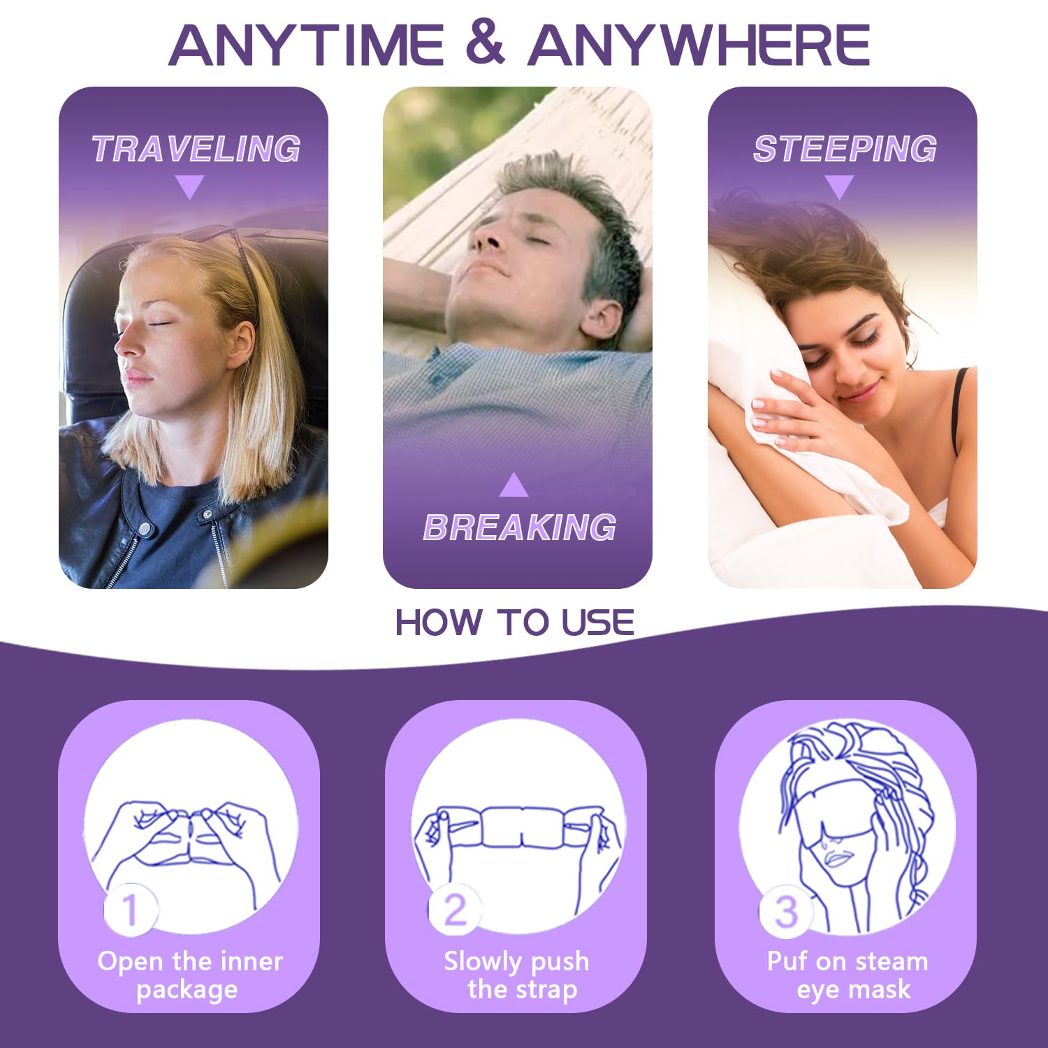 - [Luxuriously Revive Vision] Bask in the serenity of our Steam Eye Mask, delicately infused with the soothing aroma of Lavender. This opulent eye treat enhances sleep by nurturing ocular vitality.Its comforting warmth boosts circulation, banishing puffiness and dark circles. The fine steam combines with meticulous eye care, offering a peaceful spa-like escape.