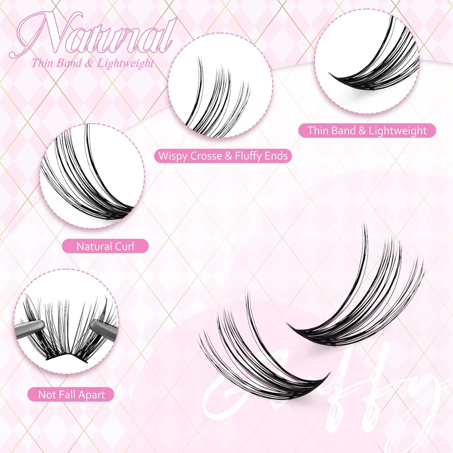 - 【Different Look Styles Depend on You】:Our cluster lashes have different styles and lengths.You can change different styles according to your preferences, and you can easily complete the eyelashes you want at home without going to the salon.You'll achieve all these looks in no time!