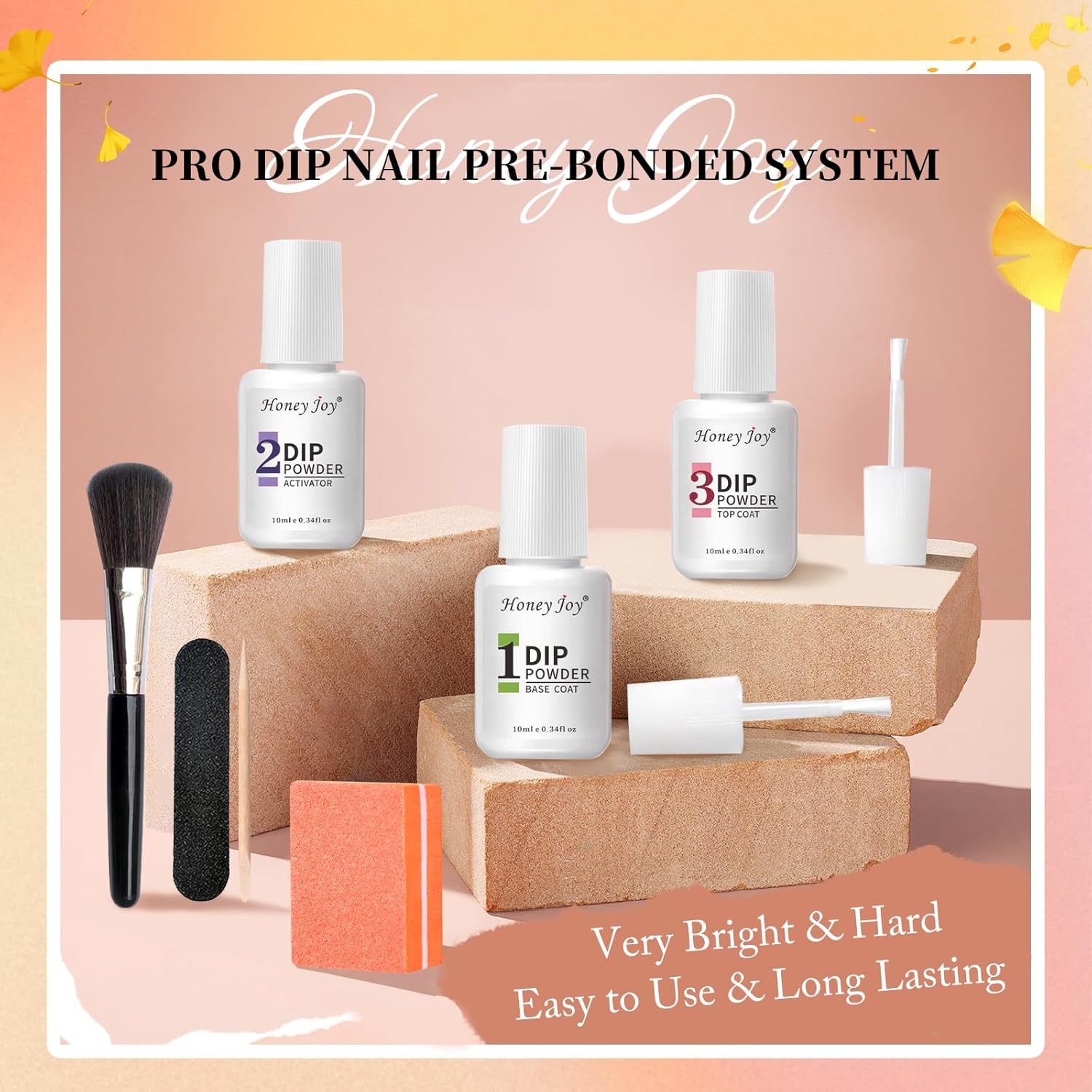 - 🎁Dip Powder Nail Kit Includes: Embrace the Classic Elegance of Halloween with our Honey Joy Midnight Black, Harvest Orange Dip Powder Liquid Set, a perfect dip powder nail kit starter. This kit contains 4 x radiant dipping powder shades (10g each) for that soft blush to playful bubblegum pop, along with a dip nails liquid set including base & top coat, and activator (10ml each). Additionally, you'll find 4 professional tools (including a nail brush, cleaner stick, and nail file) to achieve that coveted high-quality, salon-effect at home with our comprehensive dipped nails powder starter kit.