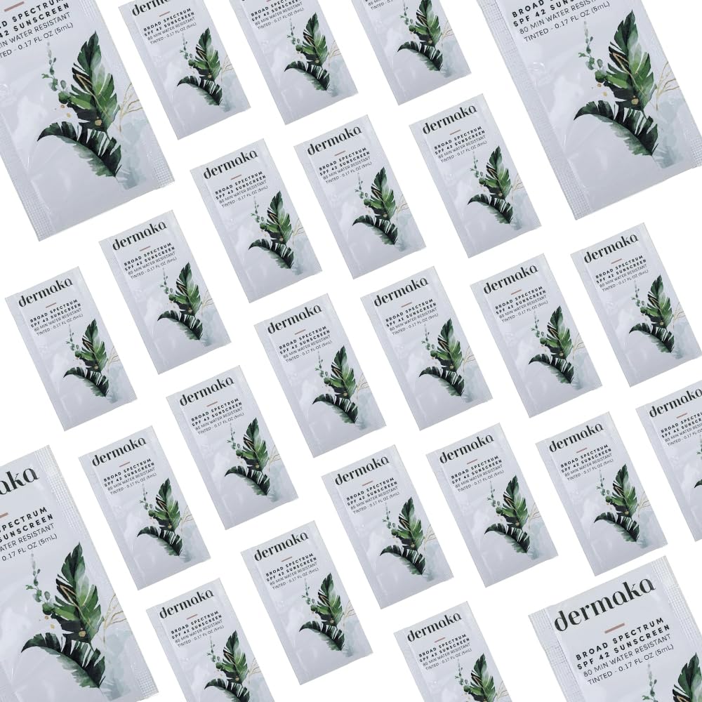 - Dermaka Sunscreen Tinted Packets are perfect when traveling with a carry-on!