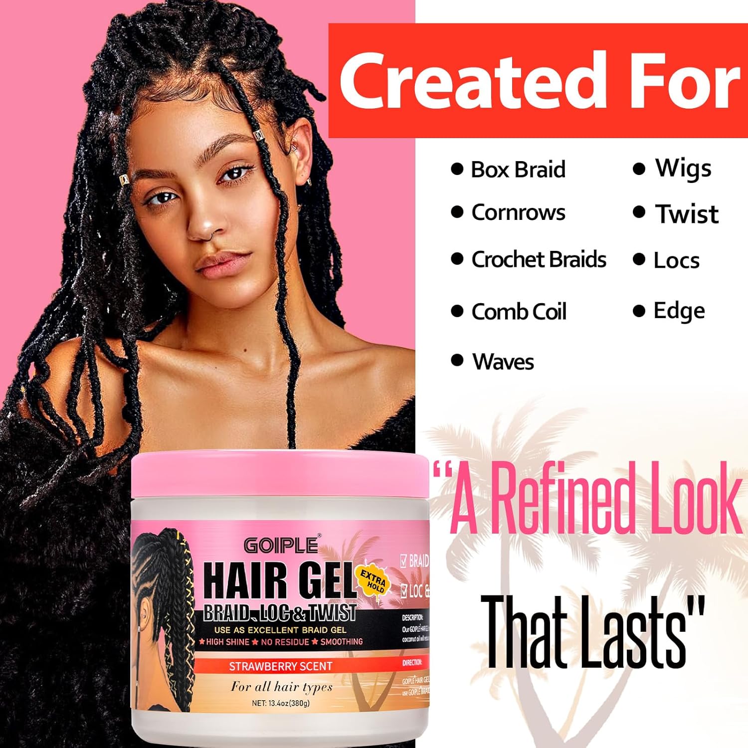 - Extreme Hold Braid Gel: This strong hold braid gel will perfect your braids, smooth out edges and frizz, and make your braids look smoother. It's super long-lasting, so your beauty will last longer