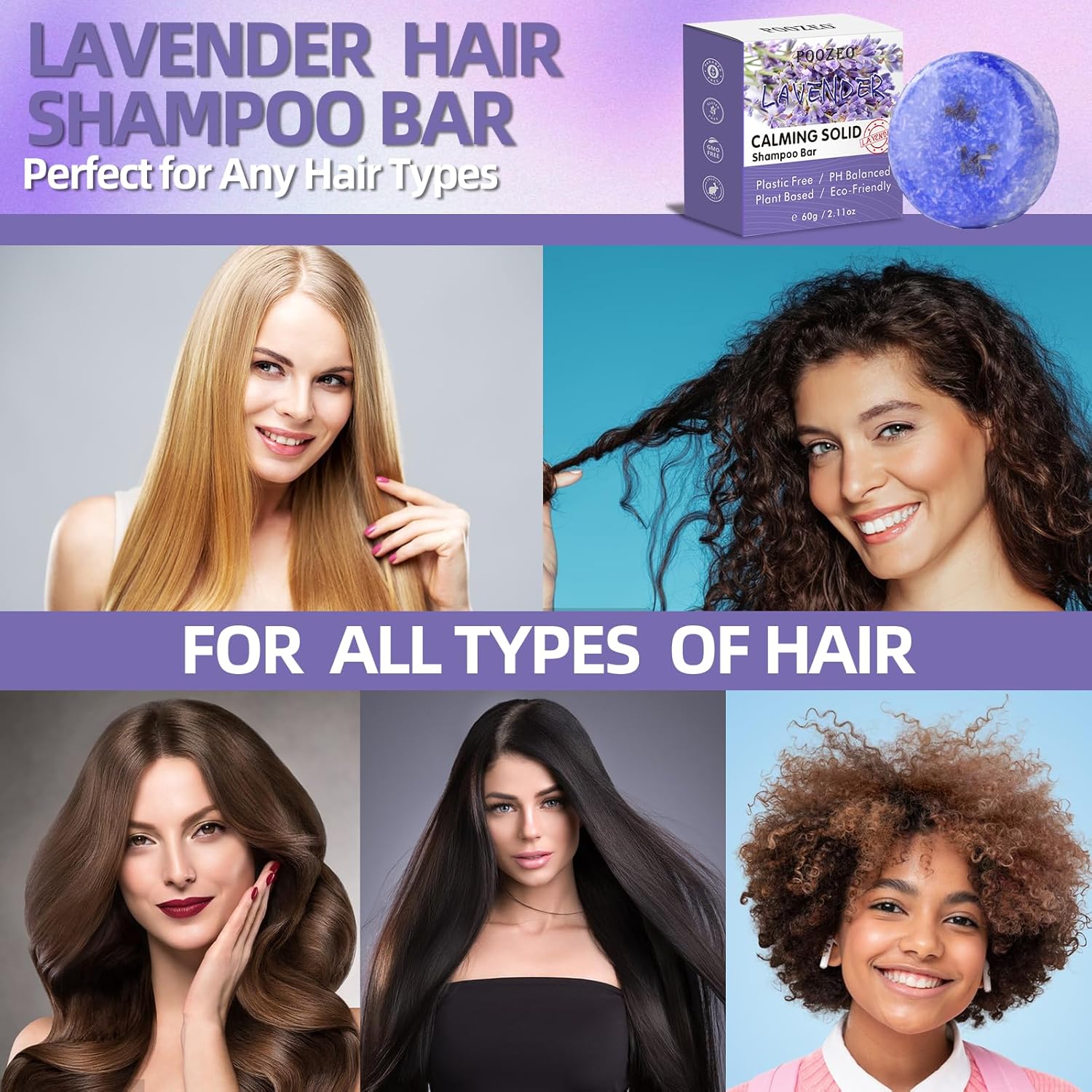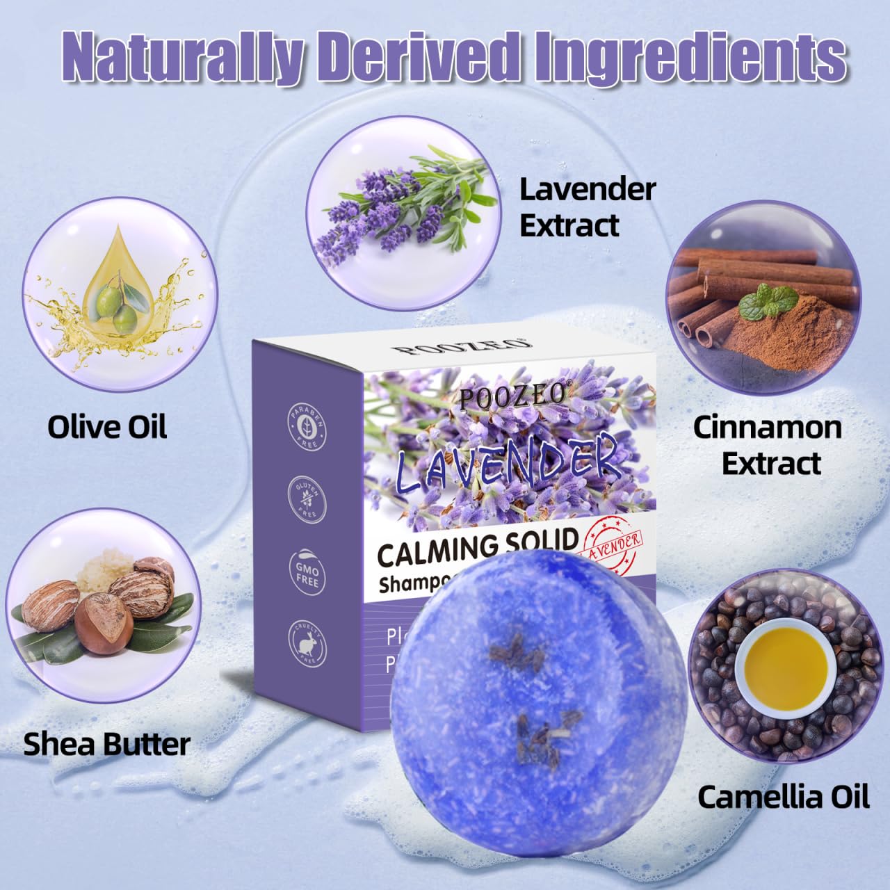 - LAVENDER SHAMPOO BAR: This shampoo bar contains rich lavender oil, lemon oil other plant essences to soothe the scalp, regulate the secretion of scalp oil, keep the scalp pores clean, help remove dandruff, and make the hair fresh, fluffy, healthy and shiny. It is suitable for neutral and oily hair!