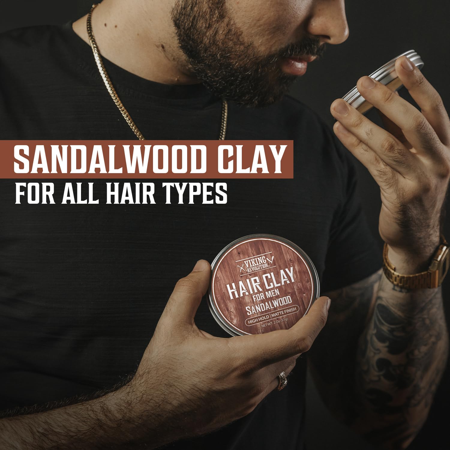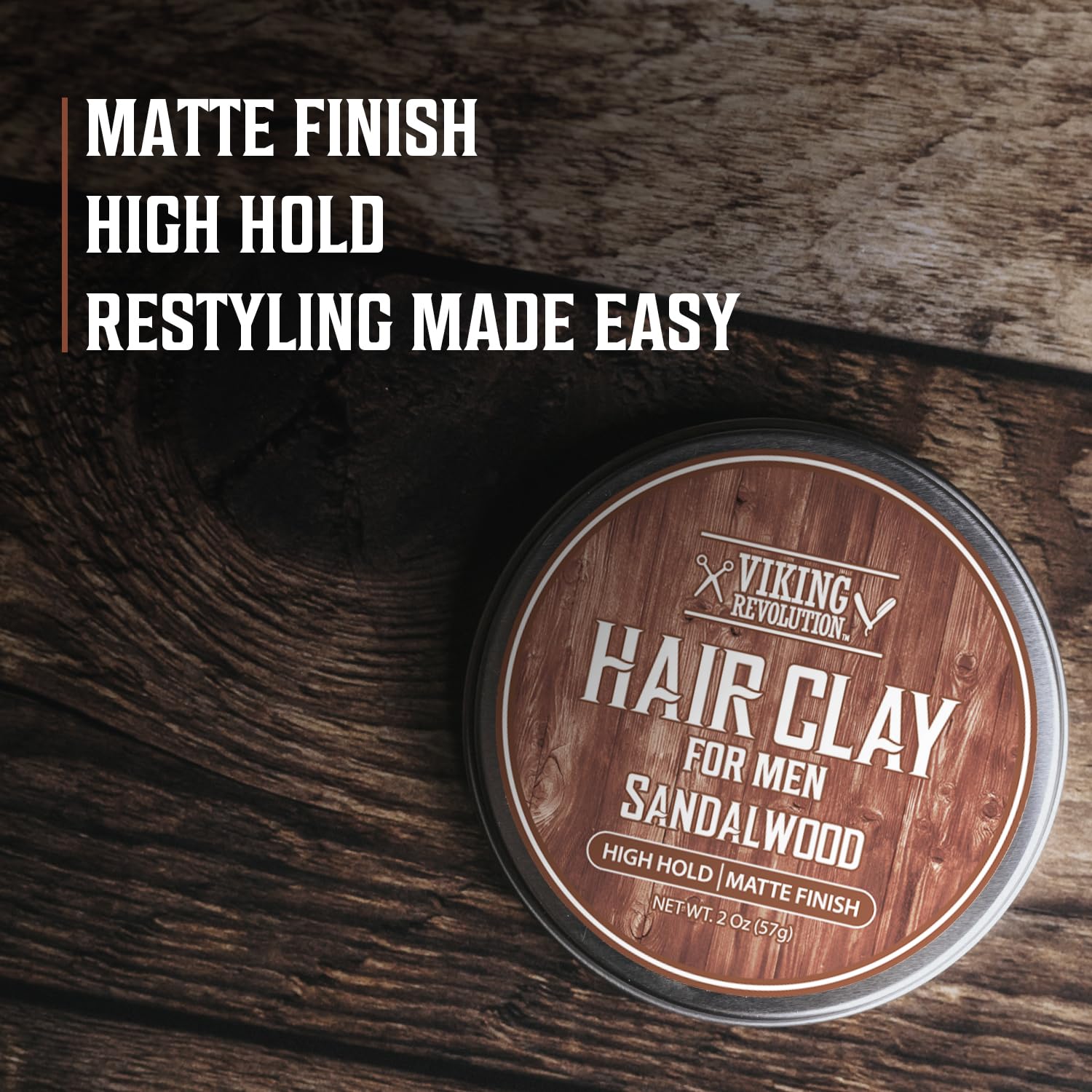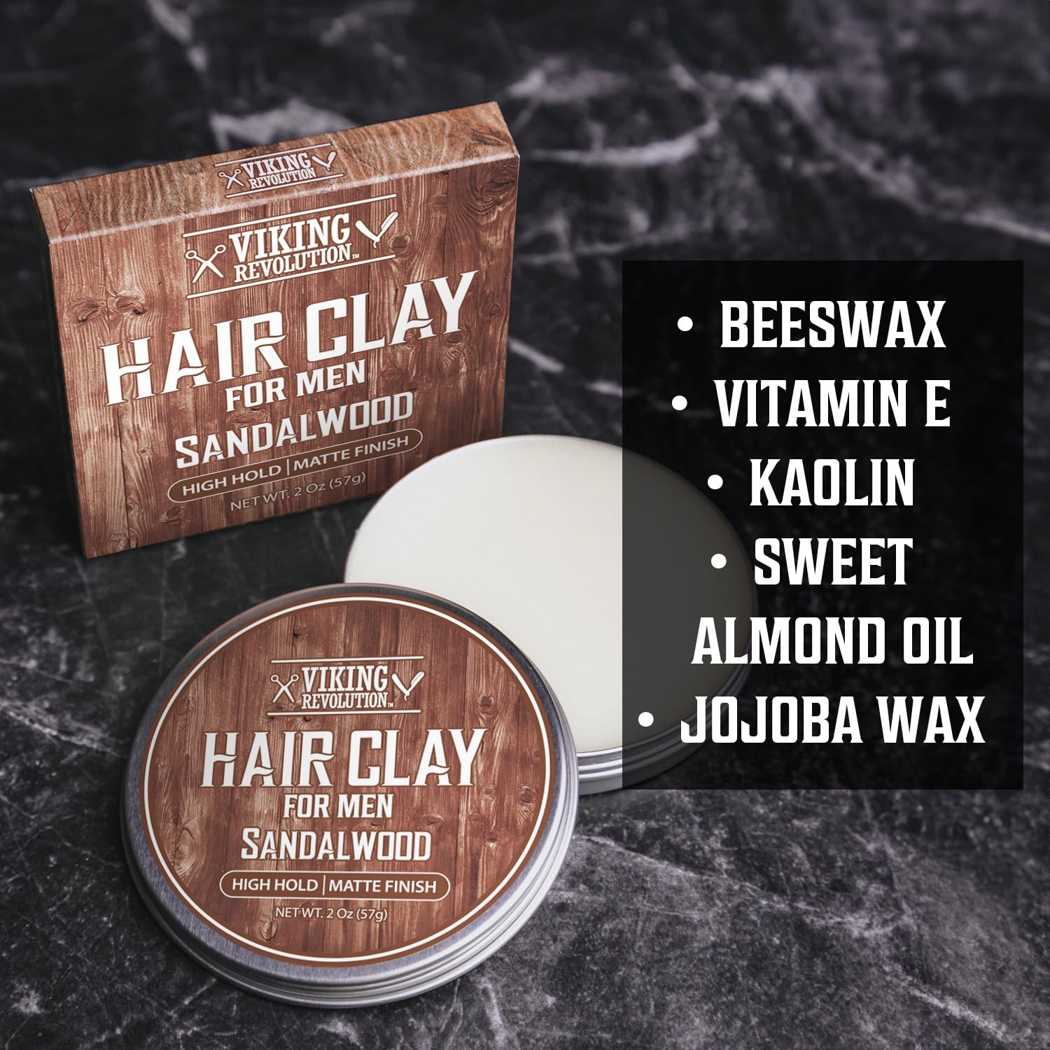 Viking Revolution Sandalwood Hair Clay – Strong Hold & Matte Finish, Texturizing Hair Clay for Men – Beeswax, Jojoba Wax & Vitamin E – Effortless Styling with Sandalwood Scent (2 pack, 2oz each)