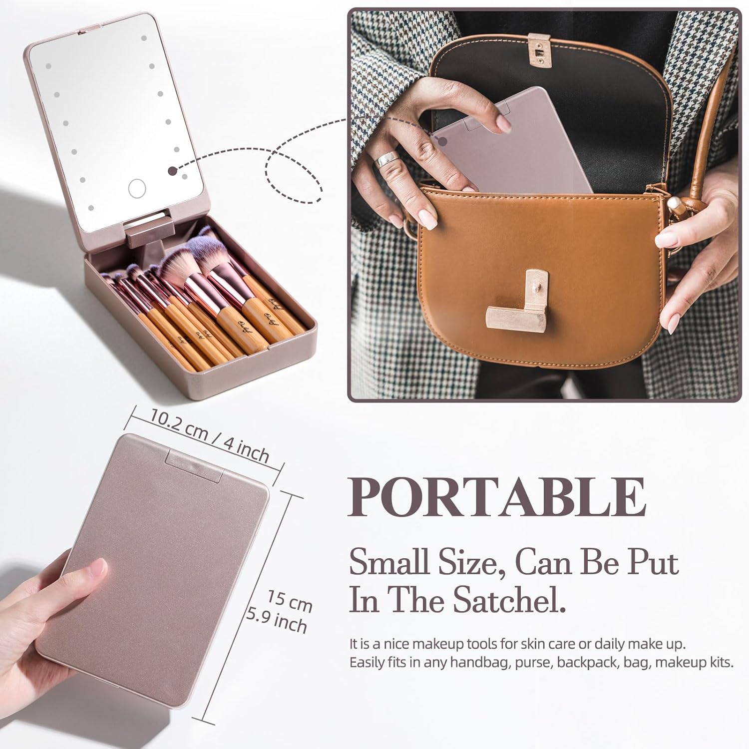 - Convenient LED Travel Case: Each set comes with a compact travel case featuring an integrated LED mirror. This makes it convenient for storage, traveling, and on-the-go touch-ups.