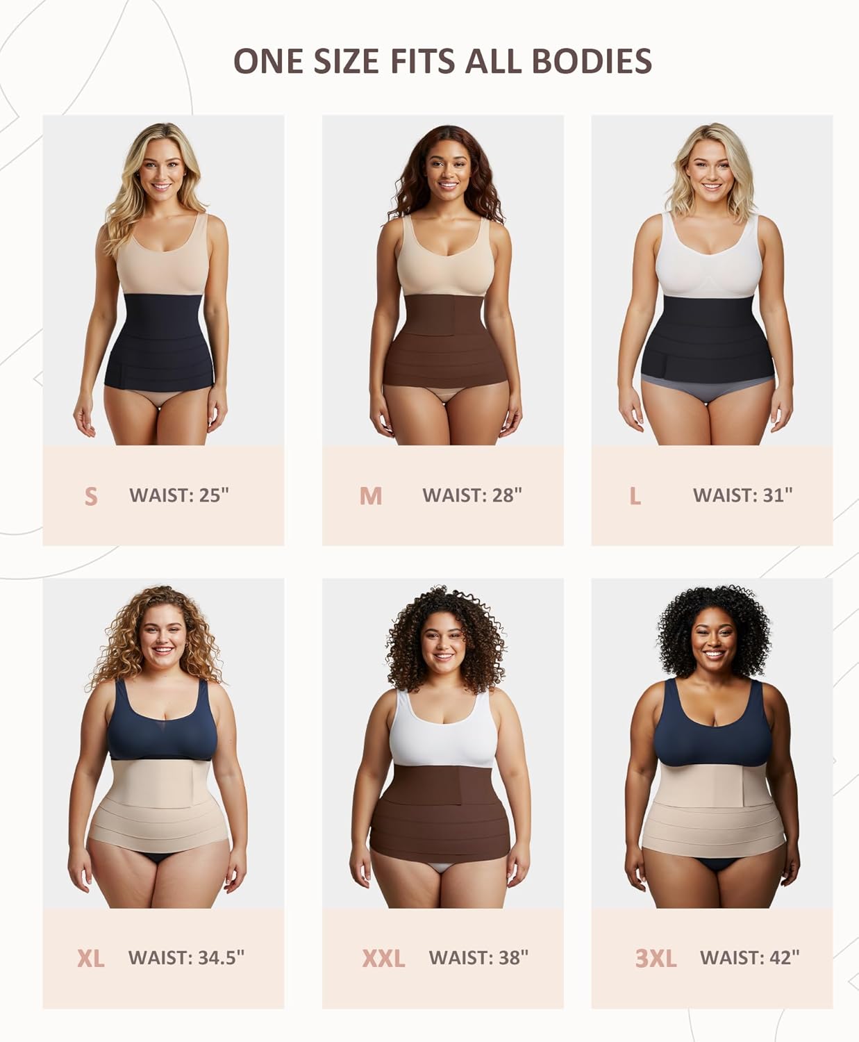 • One Size Fits All: Our waist wrap is designed to accommodate all body types with its one-size-fits-for all size within 23.5 IN-47.5 IN waistline. Measuring 157.2 IN in length and 4.92 IN in width, this bandage wrap offers versatility in snatching your waist, allowing you to adjust the tightness to your preference to your preference for ultimate comfort. Warm tips-Thinner women need to wrap more circles, will appear thick, full-figured women can wrap fewer laps and also have tummy coutrol.