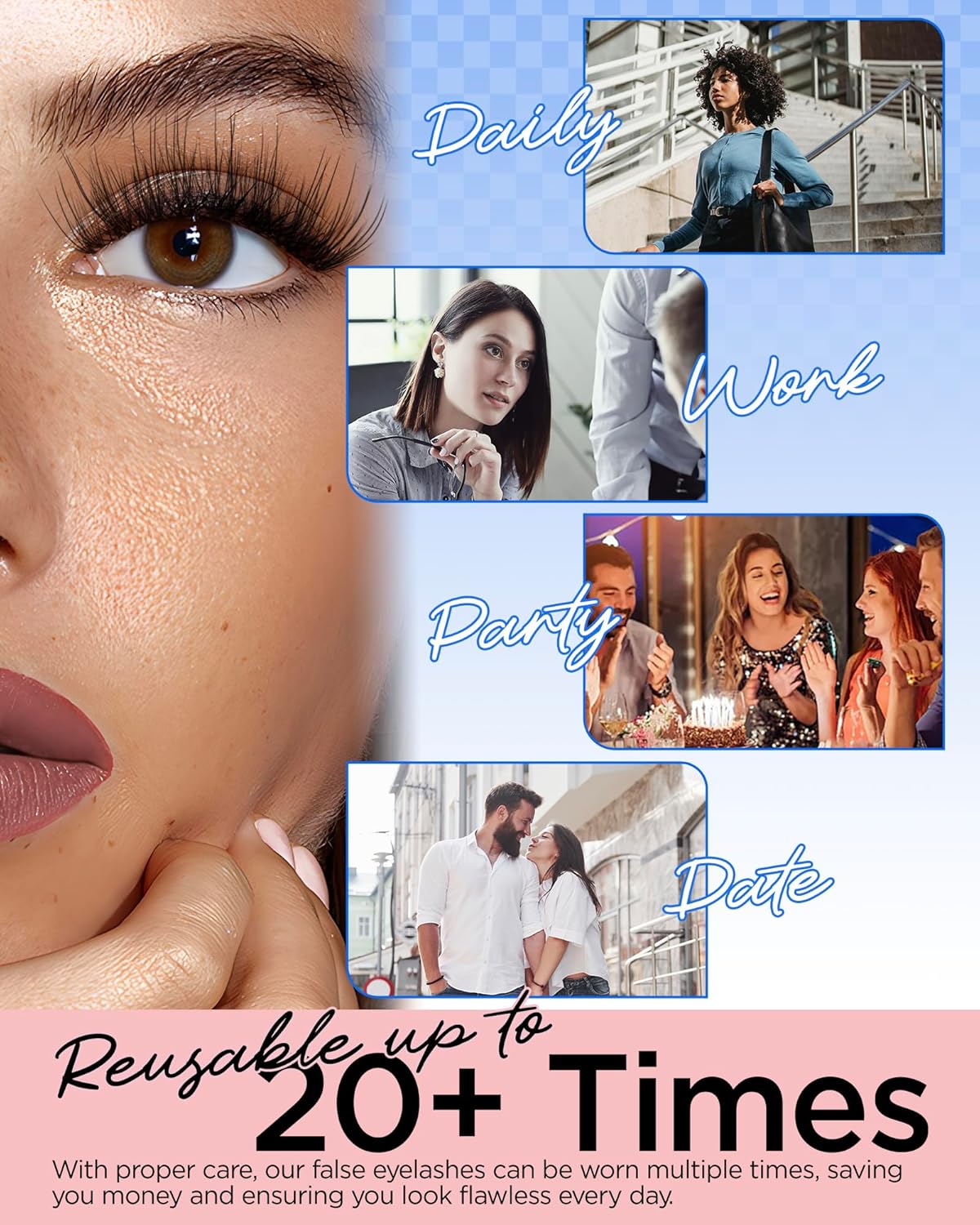 - 10 Styles, Endless Possibilities - From everyday elegance to night-out glam, choose from 10 versatile styles. The natural wispy lashes adapts to every look, ensuring you always have the perfect lashes on hand.