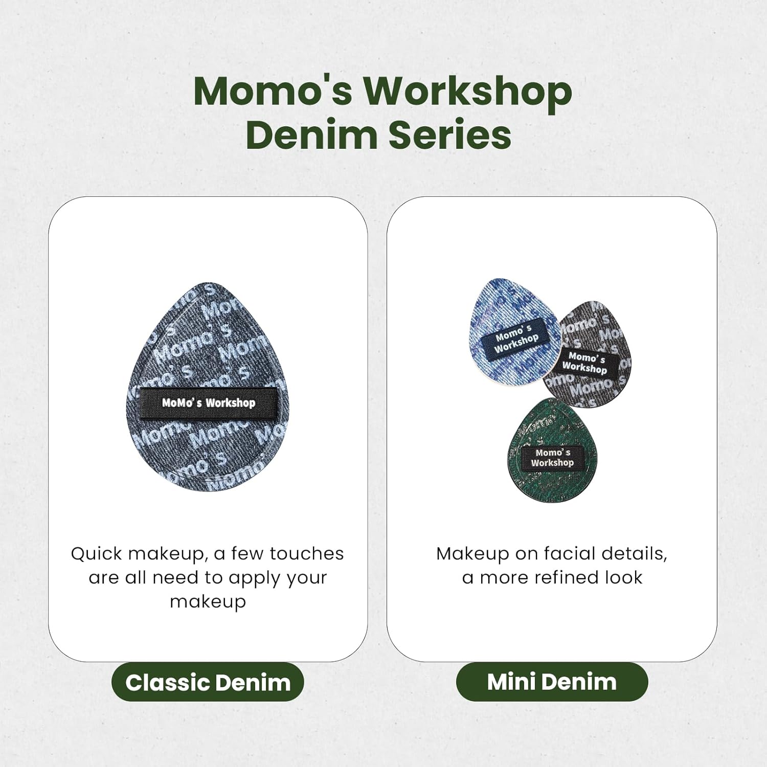 - âď¸ăTRAVEL-OPTIMIZED PACKAGEă Mini makeup sponge puffs*5+ storage, fit in any makeup pouch.The fashionable and retro denim design allows you to enjoy the makeup process even more, and it's also suitable for carrying when going out.