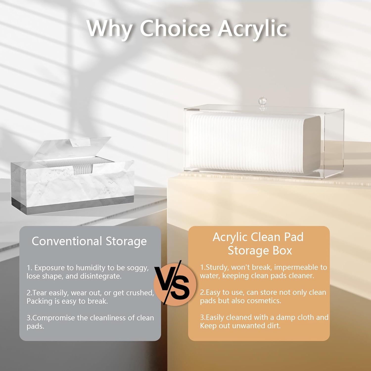 - 【Easy to Use】:This clean pad storage box, made from sturdy acrylic, is an excellent choice for Clean Skin Club Clean Pads. Its sleek design fits any counter, keeping your cotton rounds dispenser accessible. The lid design allows for easy access.