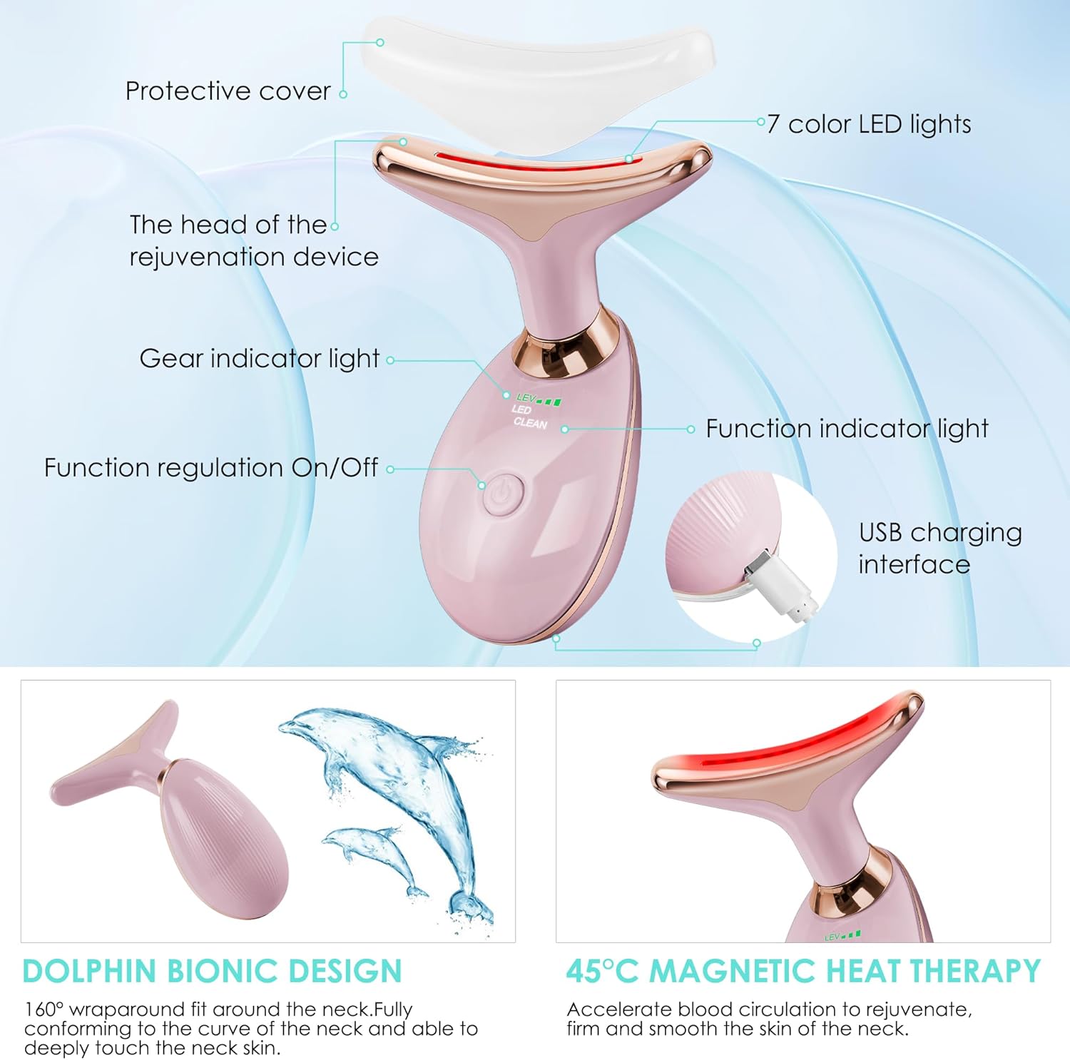 Facial Massager Red-Light-Therapy-for-Face and Neck, Face đť–˛ culpting Wand with 7 Color - Birthday, Christmas, Mothers Day, Valentines Day Gifts for Her Women Mom Best Friend Wife Teacher (Rose Gold)