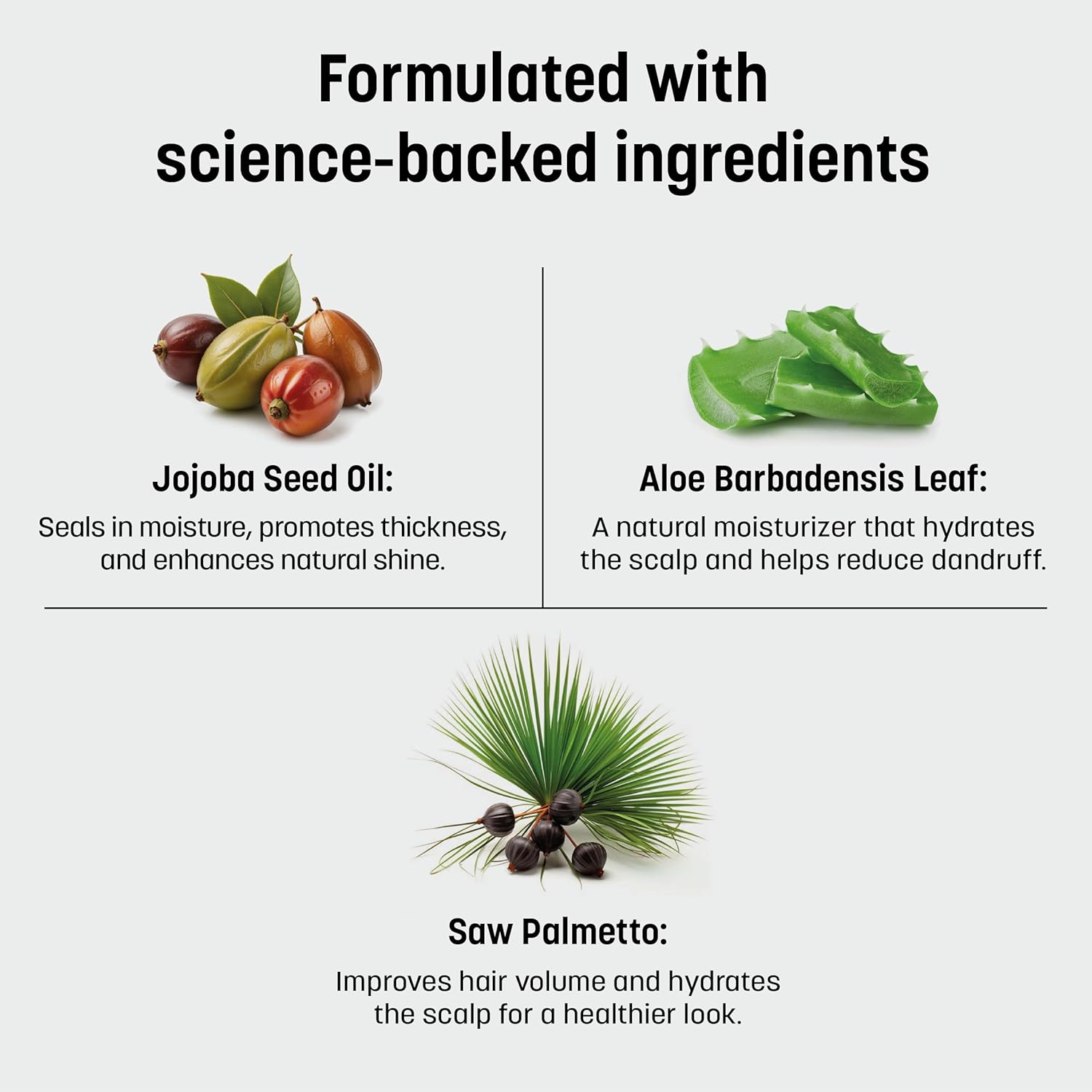 - ORGANIC & NATURAL INGREDIENTS FOR HEALTHY HAIR- Formulated with 96% naturally derived ingredients, including jojoba oil, aloe vera, and saw palmetto, to nourish and strengthen hair without harsh chemicals.