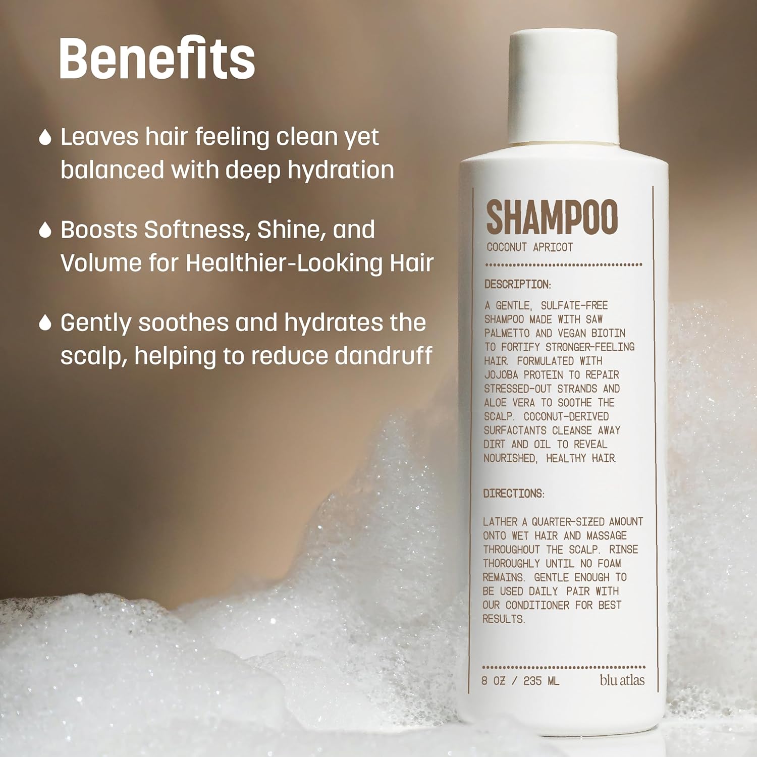 Blu Atlas Men's Natural Shampoo – Organic, Sulfate-Free, Paraben-Free – Deep Cleansing & Hydrating – Coconut Apricot Scent – Made in America – 8 oz