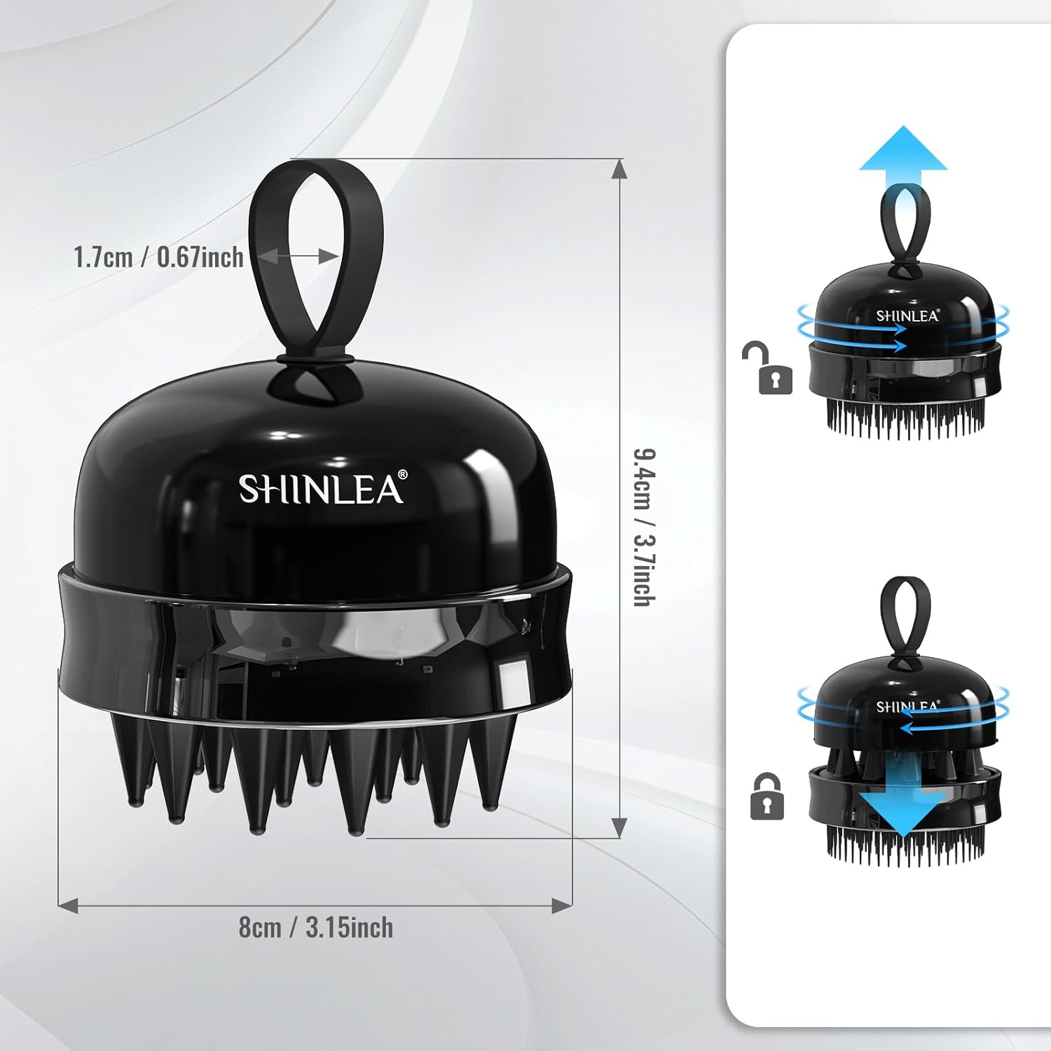 - 2 in 1 Design: The unique 2 in 1 design combines the scalp massager and hair brush into one. Both sides of the use of different heights of the comb teeth and comb needle, high school and low layered design, one side can help you more easily comb open tangled hair, the other side can be more fully contact and massage your scalp. The multi-functional scalp massage comb has a finger ring on the lid for easy gripping and comfort during use.