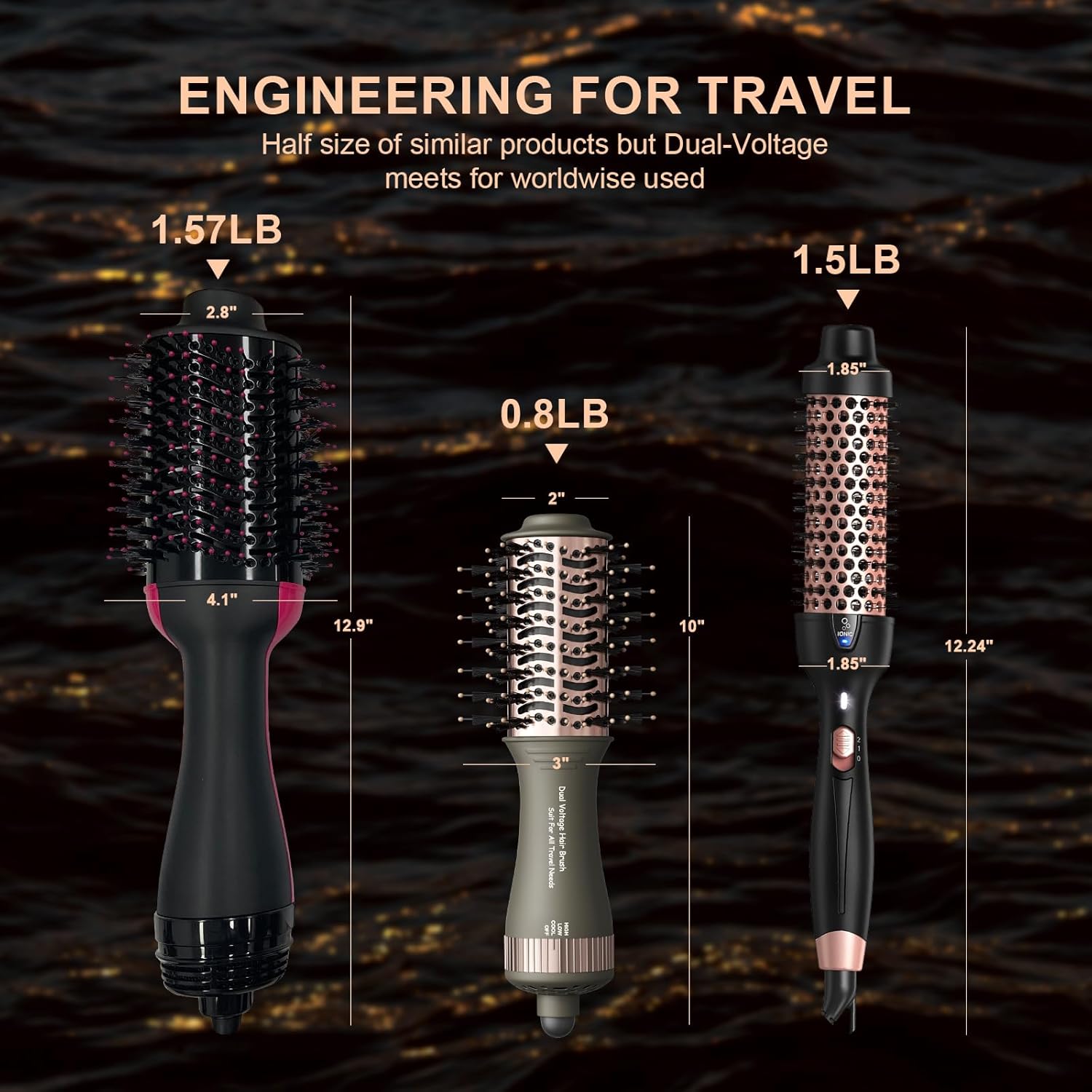 - ใ๐๐ก๐ฒ ๐๐ก๐จ๐จ๐ฌ๐ ๐๐ฌ-๐๐จ๐ฎ๐ซ ๐๐ข๐ฌ๐ข๐จ๐ง, ๐๐ฎ๐ซ ๐๐๐ฌ๐๐ฌ๐ฌ๐ข๐จ๐งใThe ๐๐๐ ๐๐๐ซ๐ญ๐ข๐๐ข๐๐๐ญ๐๐ Dual Voltage Travel Blow Hair Dryer Brush is just ๐.๐๐ ๐ฅ๐๐ฌ. This versatile device boasts a patented ๐-๐๐ง๐๐ก ๐จ๐ฏ๐๐ฅ cylinder engineered with 30% more even heat distribution, delivering enhanced styling performance through optimized airflow dynamics. Besides, it features a ๐.๐ ๐๐ญ ๐ญ๐๐ง๐ ๐ฅ๐-๐๐ซ๐๐ ๐๐๐ยฐ swivel cord that prevents tangling for effortless styling, which goes beyond the usual hair dryer.