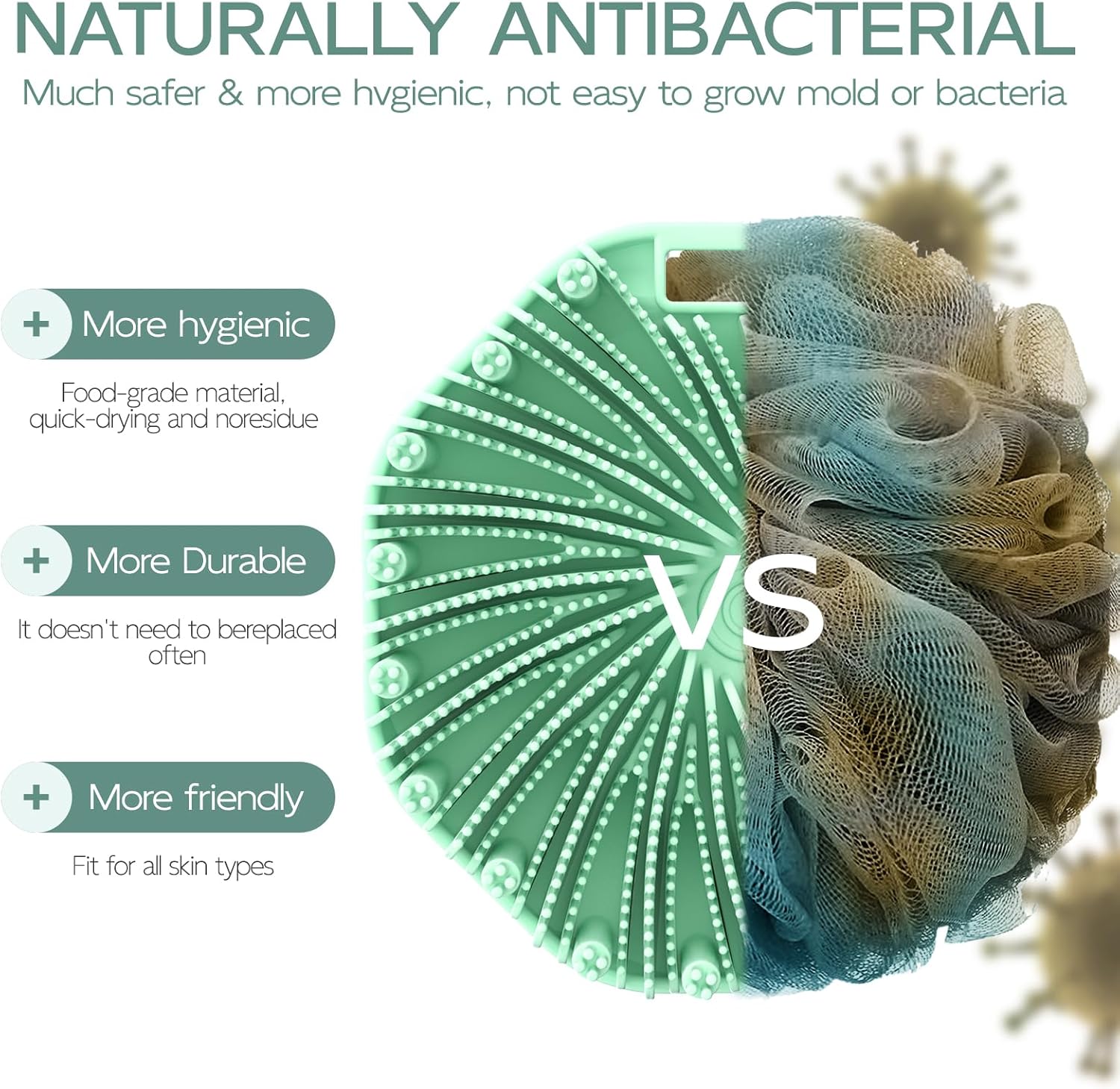 - ECO-FRIENDLY SILICONE: Crafted from safe and durable food-grade silicone, our body bath scrubber is gentle on your skin while still offering effective exfoliation and cleansing.