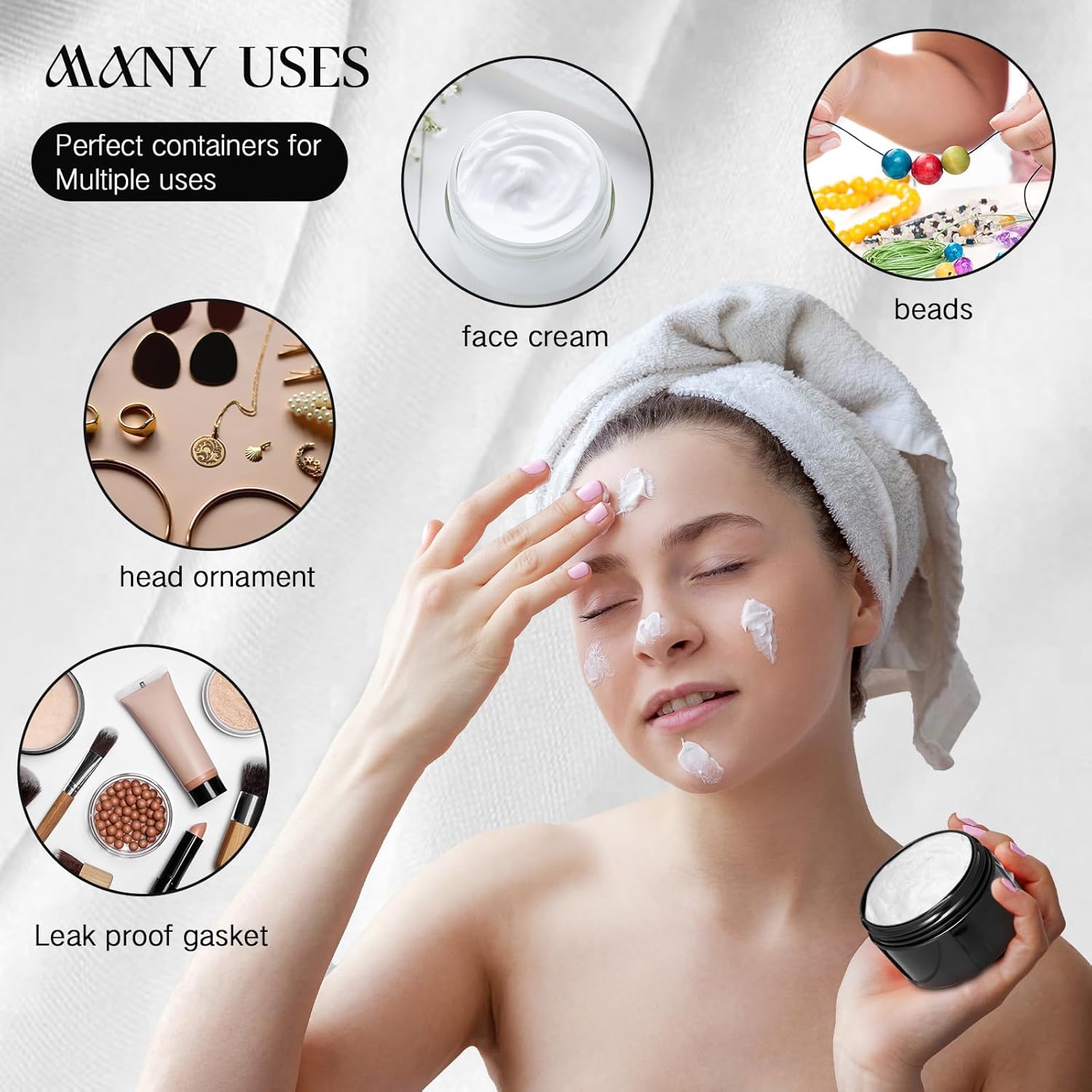 - What You Receive: there are 4 pieces plastic jars with black screw-on lids; They are durable and refillable, measuring about 5.2 cm/ 2.05 inches in diameter, 4.3 cm/ 1.7 inches in height