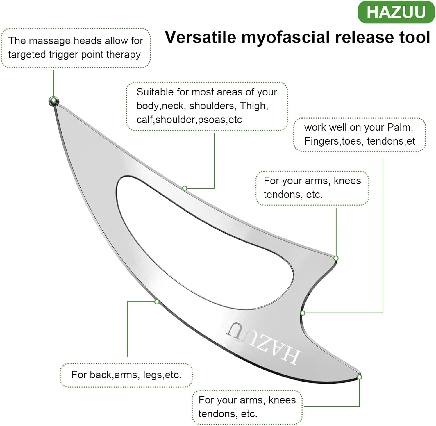 - 4. Efficient Massage Heads: Our stainless steel tool features massage heads that efficiently target body parts, allowing for targeted trigger point therapy, improved blood circulation, and tension relief.