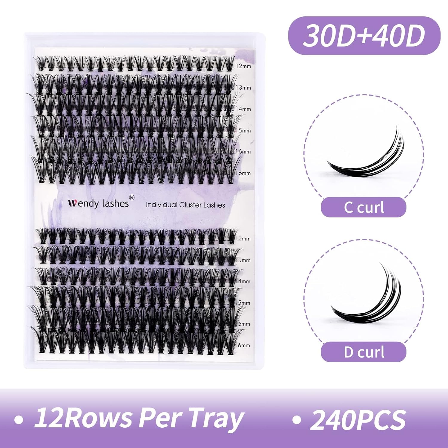 DIY Lash Clusters Natural Wispy: 240Pcs, 30D+40D, Wendy, Ultra-light, Natural, Wispy, Waterproof, Cat Eye, D Curl, 12-16mm Mixed, RR126