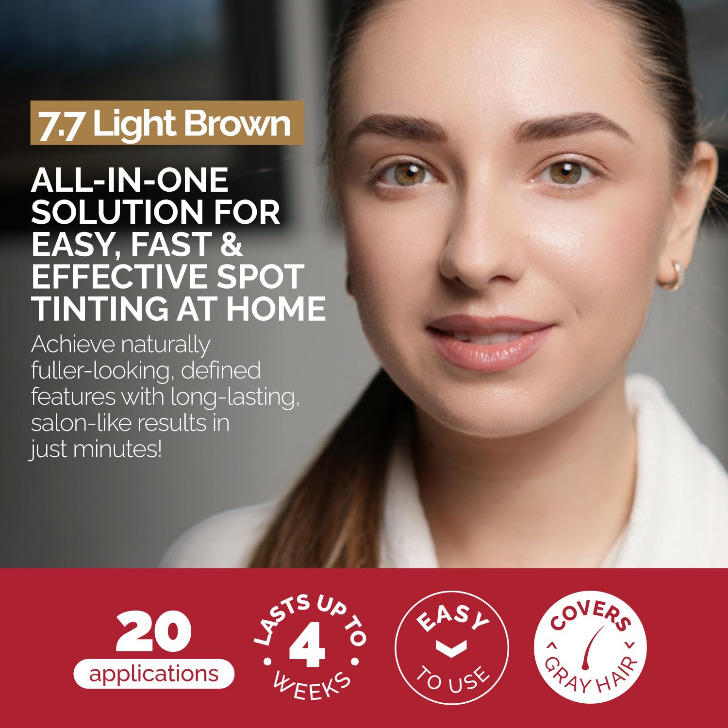 RB RENATA BEAUTY Tint Kit – Cream Hair Dye Kit with Developer and Application Brush for Spot Coloring - Covers Gray Hairs, Smudge-Proof, Long-Lasting Up to 4 Weeks, 20 Applications [Light Brown]