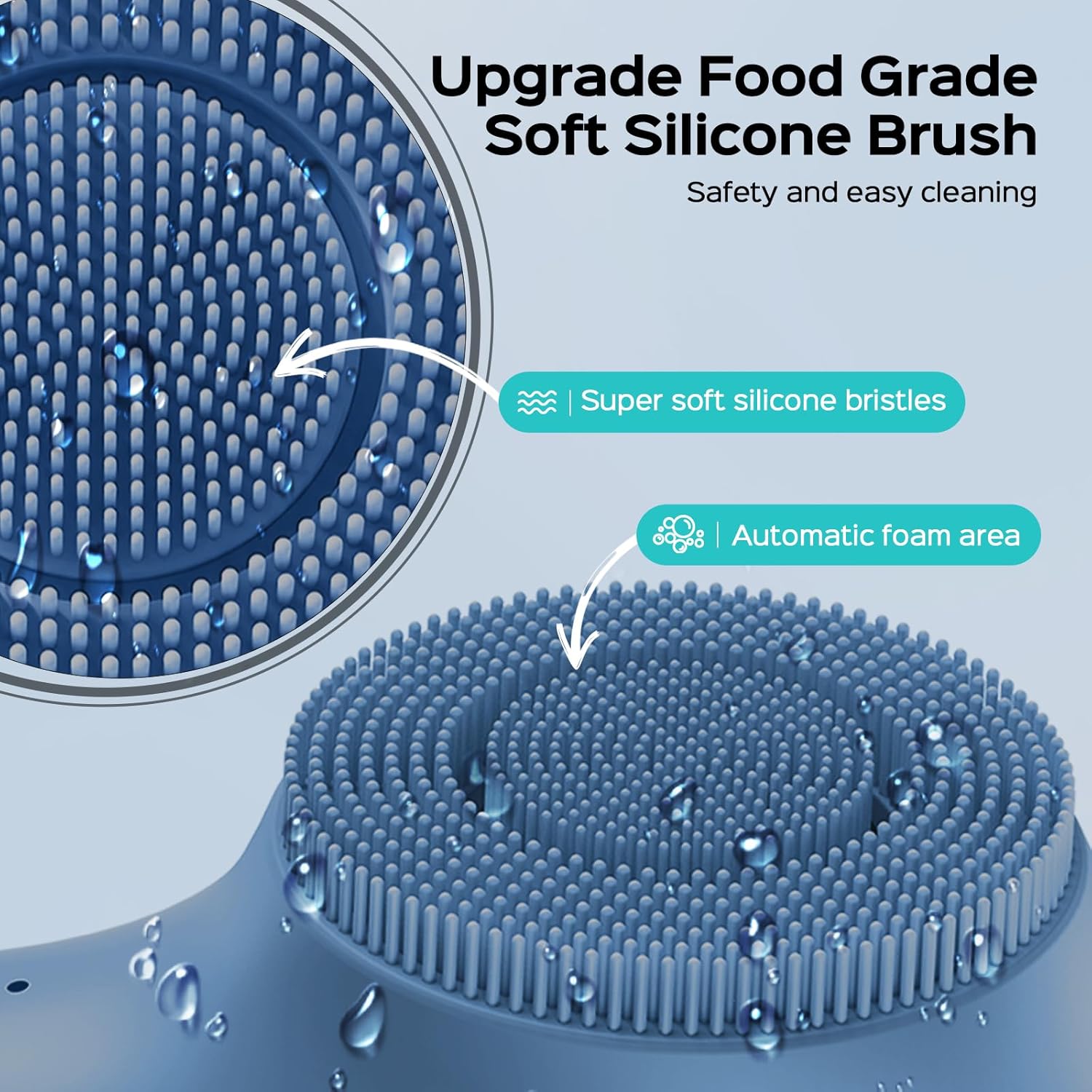 - 5 Speed Levels and Smart Memory: The rotating face brush cleanser offers 5-speed adjustment to effectively pore cleansing, erase oil, dirt, blackheads, skin debris, and makeup residue, which is suitable for men's and women's skin types and different cleaning needs. The soft exfoliating electric face brush design is very gentle, ensuring that you use it safely and comfortably. The silicone scrubber exfoliator with slip-desistant design of smart memory function automatically saves the last used mode settings to bring you a smarter experience