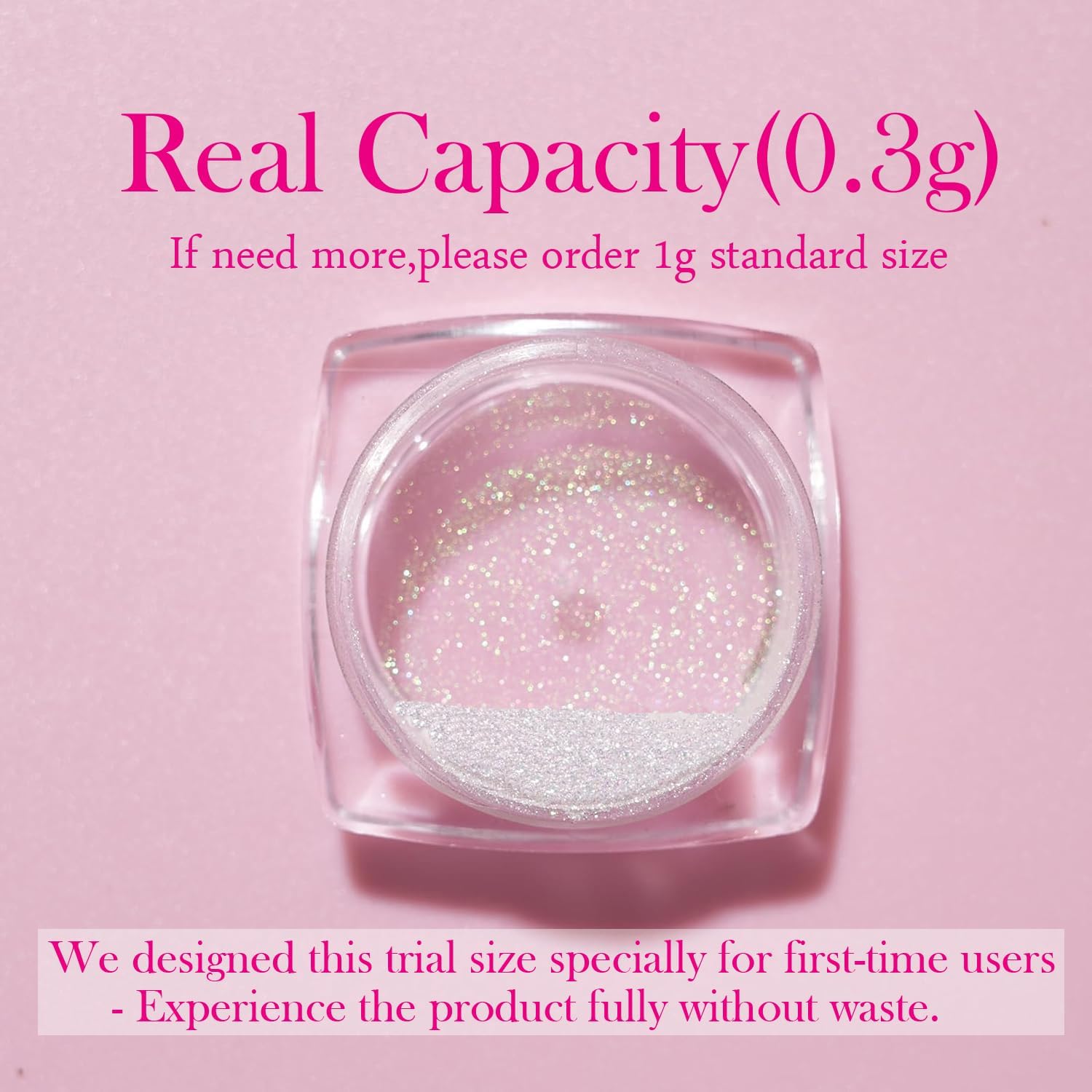 - 【Pretty Diva Exclusive Perks】: Risk-free experimentation in a beginner-friendly size of unicorn nail powder! It finished just as you wanted to try new shades. We designed this 0.3g trial size specially for first-time users - experience the product fully without waste.