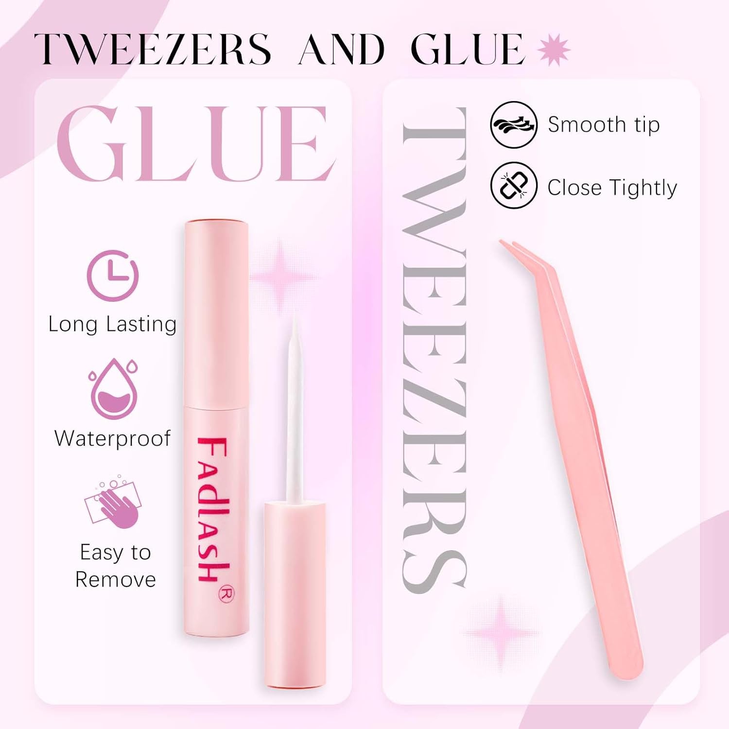 False Eyelashes Kit Thick and Voluminous Cat Eye Lashes Wear Comfortable Fake Lashes with Thin Band, 14 Pairs Lash Applicator Tool at Home by FADLASH,LZDD