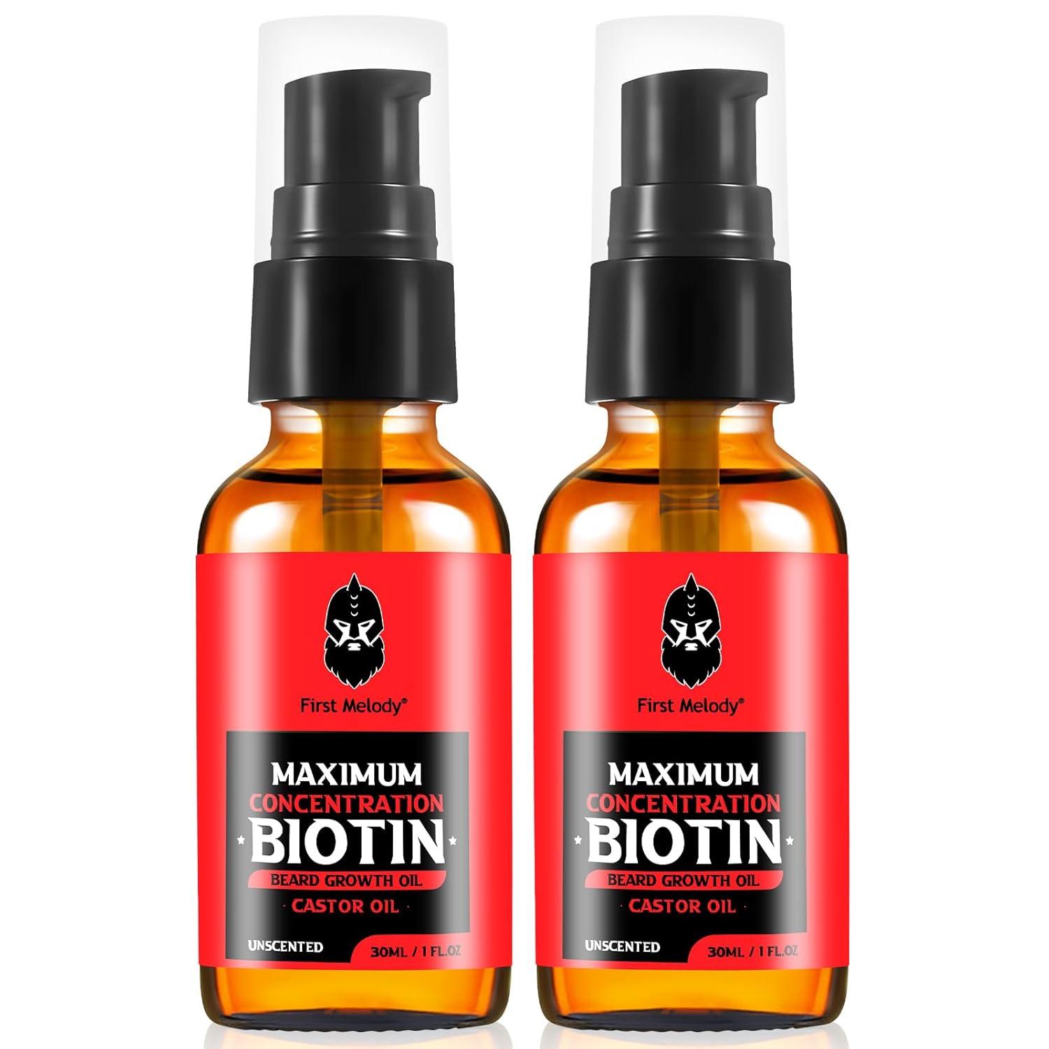 Beard Oil,Maximun Thickening Biotin, with Castor Oil and Argan & Jojoba Oils, Promotes Beard Growth, Styles, Strengthens & Softens Beards & Mustaches,1 Ounce*2(2 Pack)