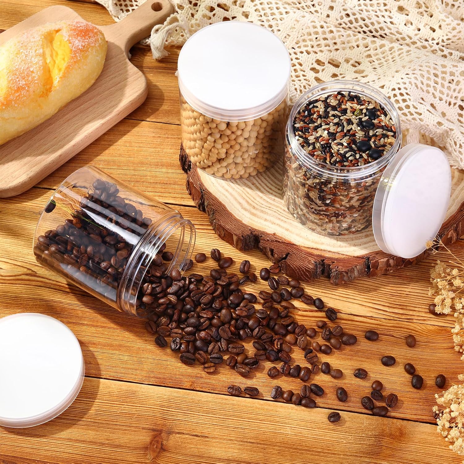 - What You Receive: there are 4 pieces plastic jars with clear screw-on lids; They are durable and refillable, measuring about 16 oz in capacity