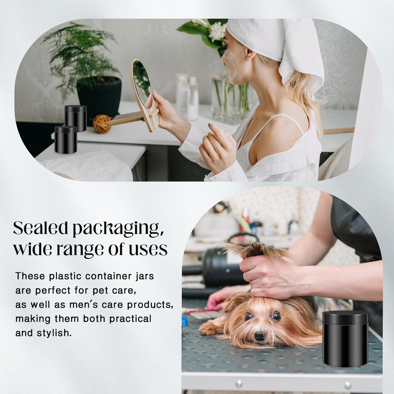 - What You Receive: there are 4 pieces plastic jars with black screw-on lids; They are durable and refillable, measuring about 16 oz in capacity