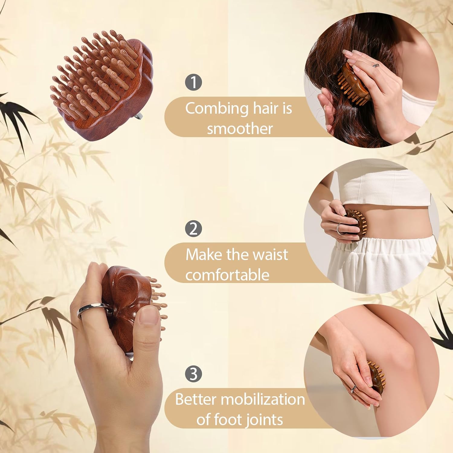 - 【Natural Bamboo & Gentle Massage】 Made of 100% natural bamboo and soft bristles, this scalp massager is gentle on sensitive skin, providing a relaxing experience without irritation
