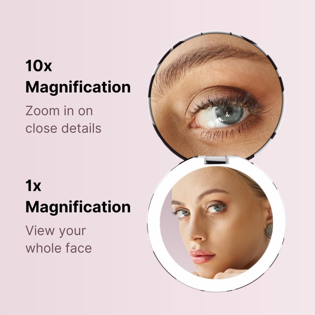 Fancii Taylor Compact Travel Makeup Mirror with Lights, 10x /1x Magnifying, Rechargeable, 3 Light Modes, Dimmable - Small Lighted Handheld Purse Mirror, Double Sided, for Gifts (Mellow Monochrome)