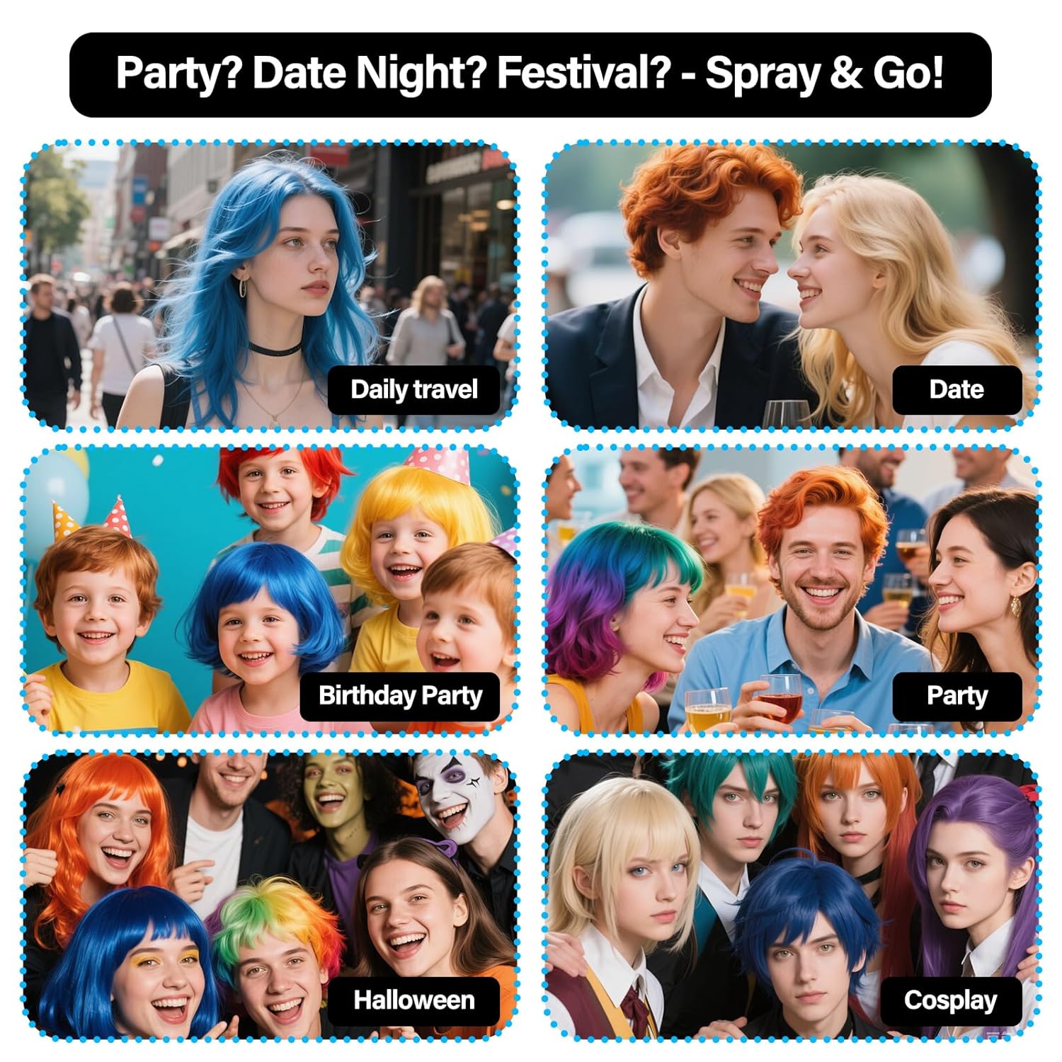 - 1. Instant Vibrant Color---- Get Bold, Vibrant hair in seconds! Our Temporary hair color spray delivers rich,fade-resistant shades that last all day, perfect for parties, costums, or fun style experiments.