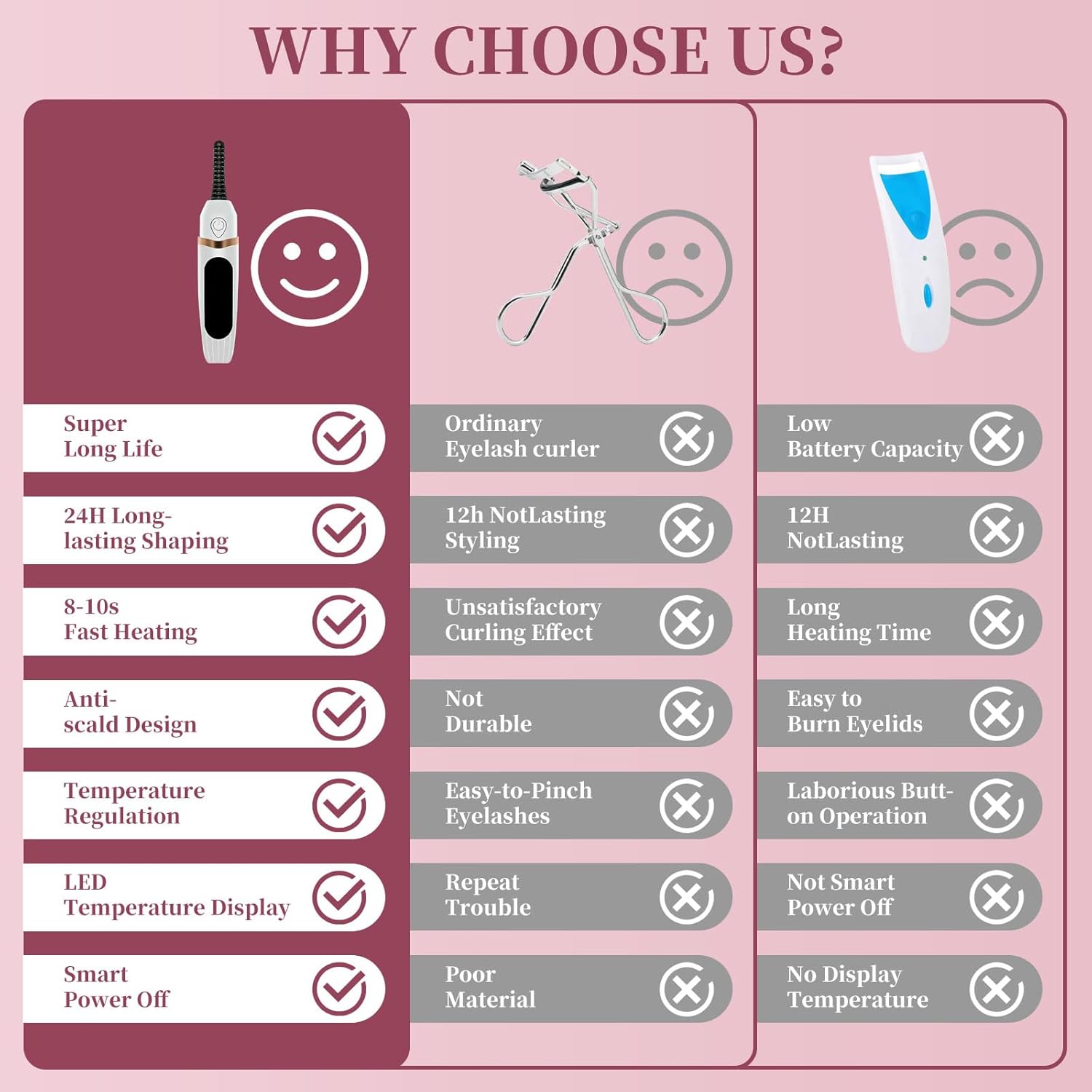 - 【Lasts 24 Hours】Say goodbye to flat lashes! Our heated eyelash curler combines an ergonomic design with advanced heating technology to lock in your curl for up to 24 hours. Tested and loved by users, it keeps your lashes beautifully lifted all day—so you can face the day with confidence.