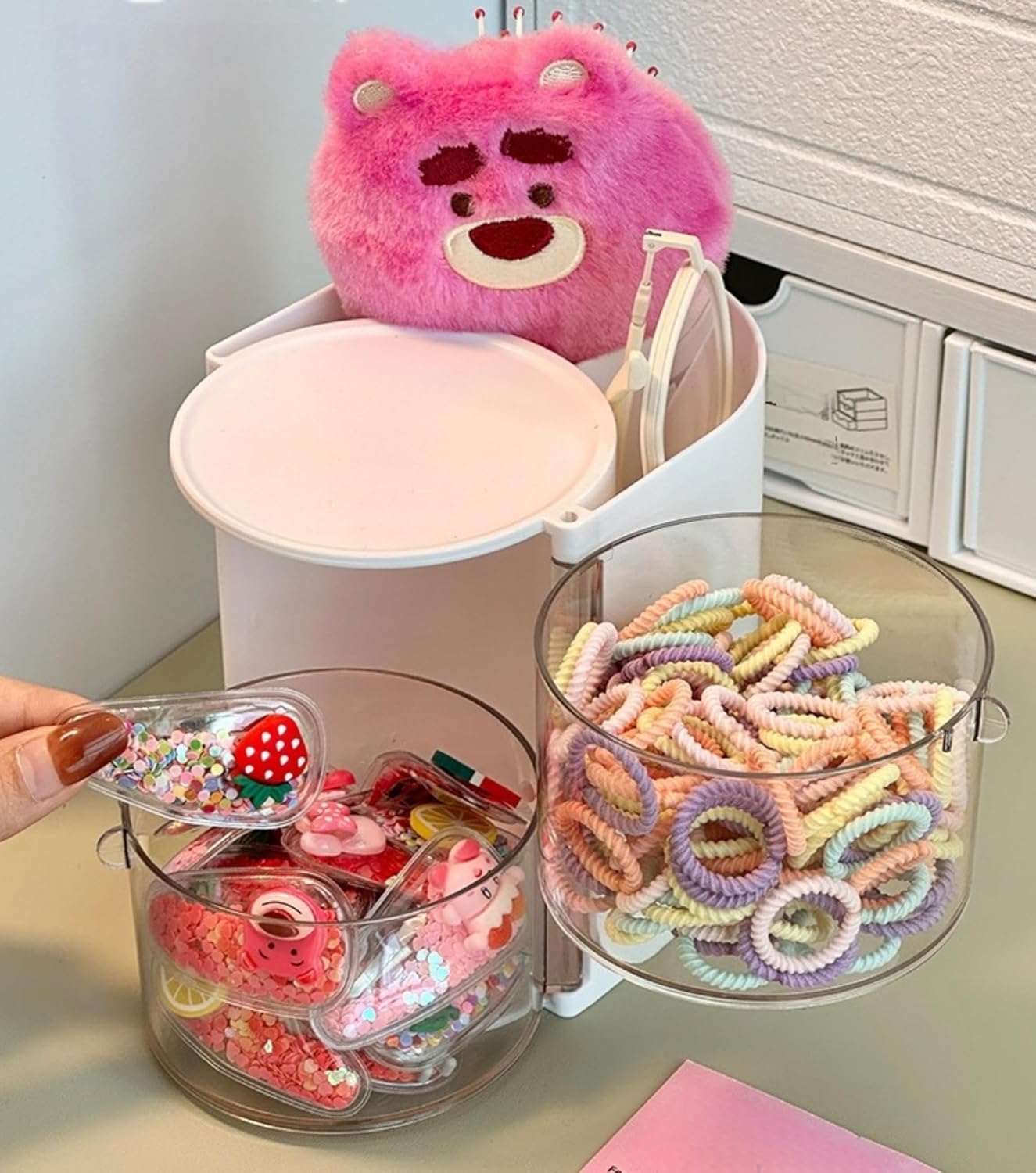 - â ăExquisite AppearancăThe hair accessories organizer appearances design is exquisite, and the simple and fashionable style can match various dressing table styles. It is both practical and beautiful, adding a sense of refinement to your dressing table