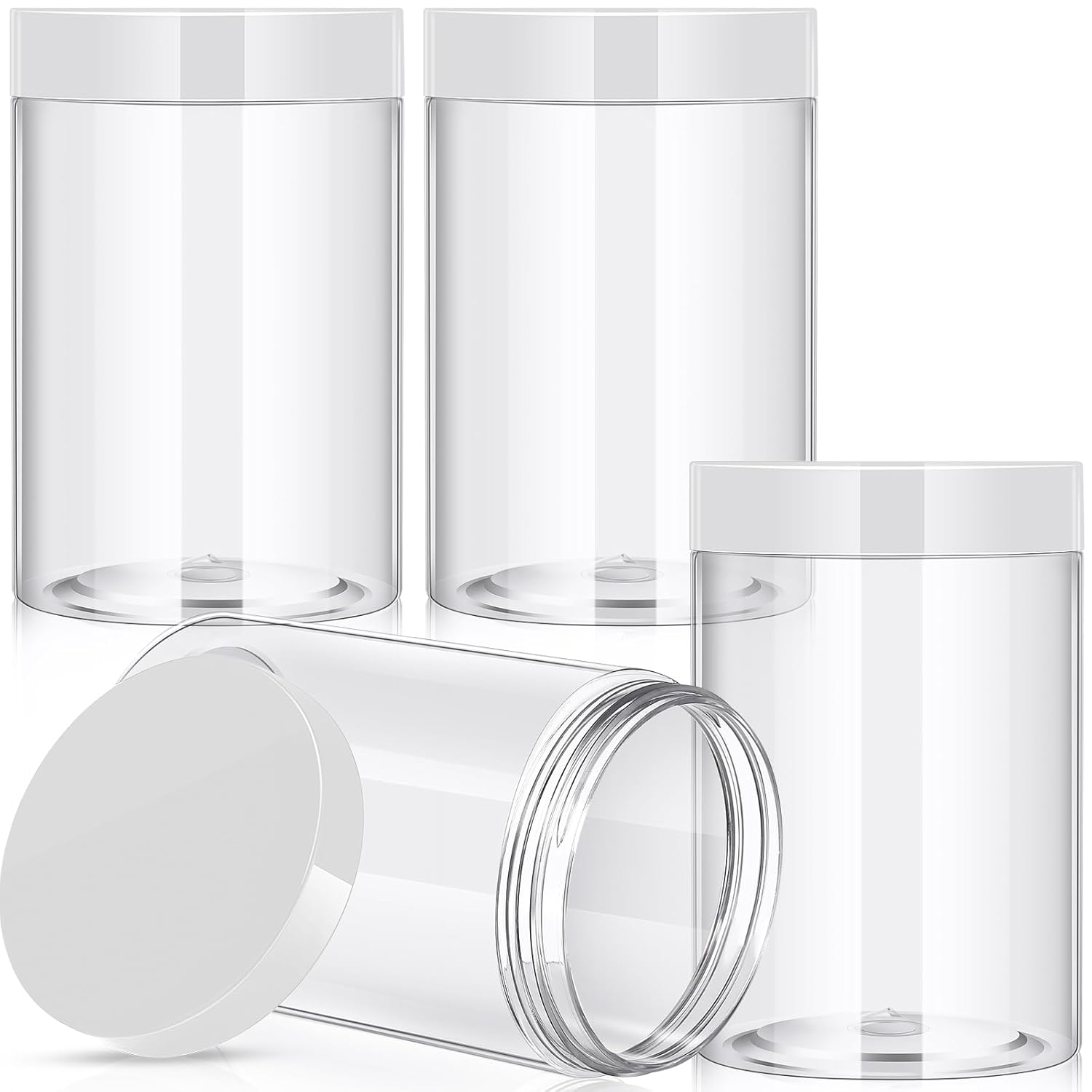 - What You Receive: there are 4 pieces plastic jars with clear screw-on lids; They are reliable and refillable, measuring about 27 oz in capacity