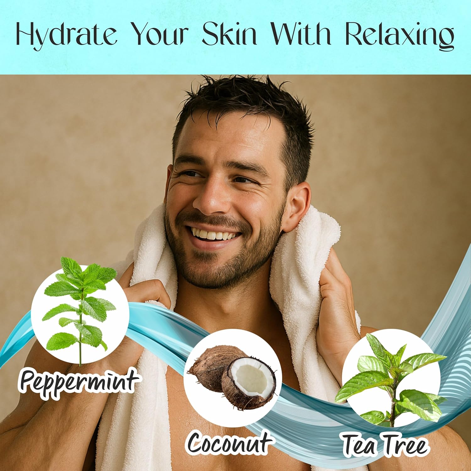 AnatoliaDaphne Fresh Ice Peppermint Body Wash and Shower Gel for MEN with Vitamin E for Jock Itch, Eczema, Ringworm, Body Odor, Body Wash Men with Added Body Oils, LARGE 20.2 FL Oz Bottle