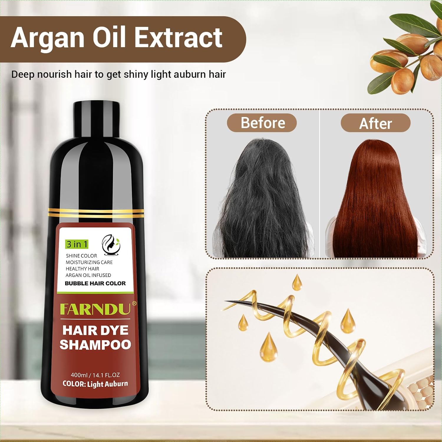 - Easy to Use: No bowls or brushes needed! Just apply like regular shampoo, leave on for 10-15 minutes for a light auburn color.