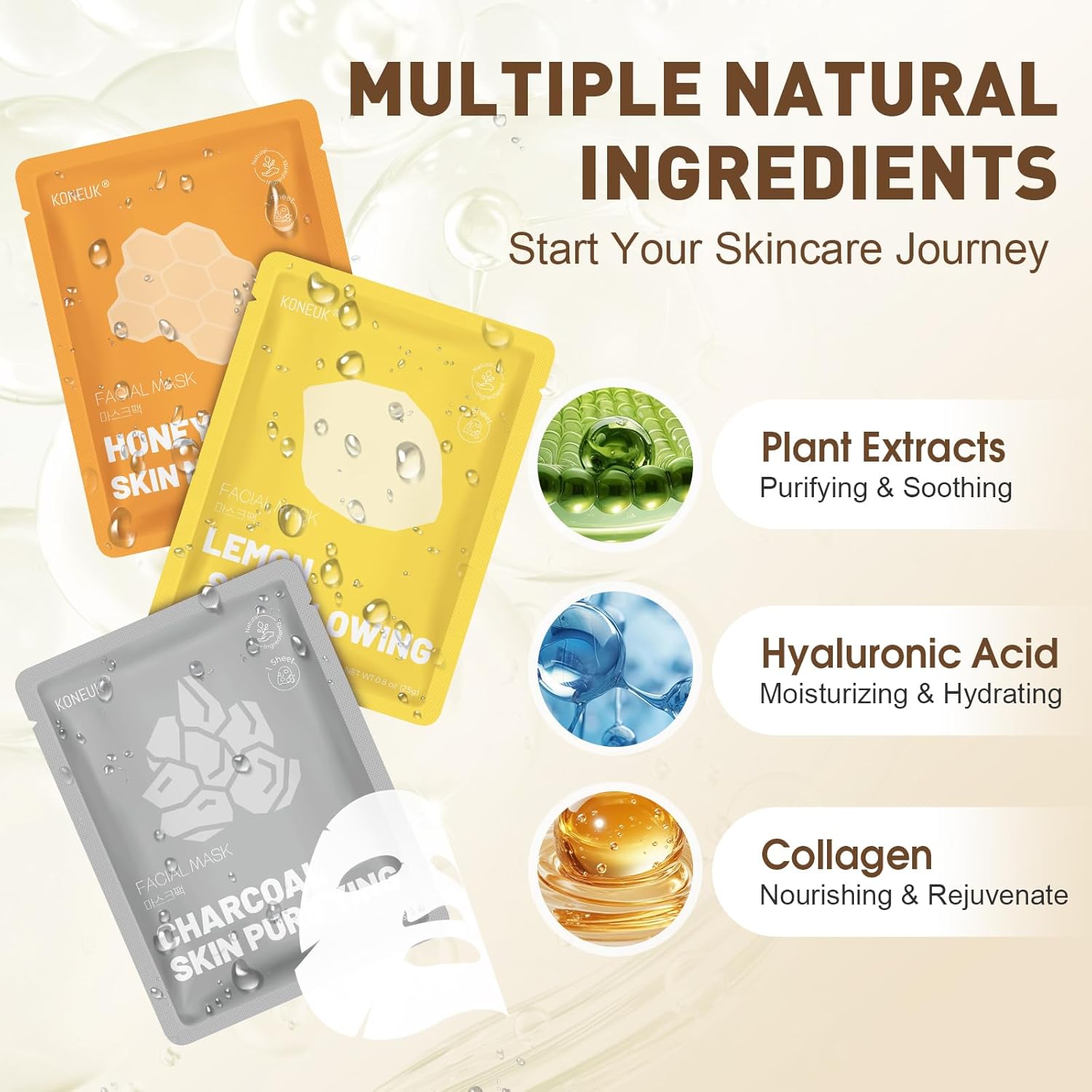- 【120 Pack Collagen Face Masks】Our face masks skincare includes a total of 12 types: grapefruit,honey,avocado,pearl,lemon,cucumber,pomegranate,charcoal,seaweed,aloe,collagen,and milk,10 pcs of each type of facial mask.Different facial masks target different skin problems,the rich collagen essence is quickly absorbed by the skin,leaving it more hydrated and smooth